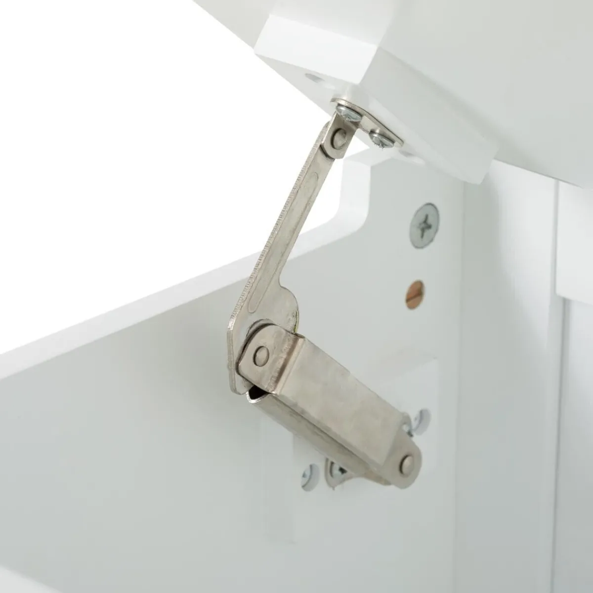 Ce banc cosy réalisé en MDF possède un dessus en bois de pin massif. La visserie est en métal. Pratiques, les espaces sur les côtés évitent que votre enfant ne se pince les doigts lorsqu’il referme le coffre.