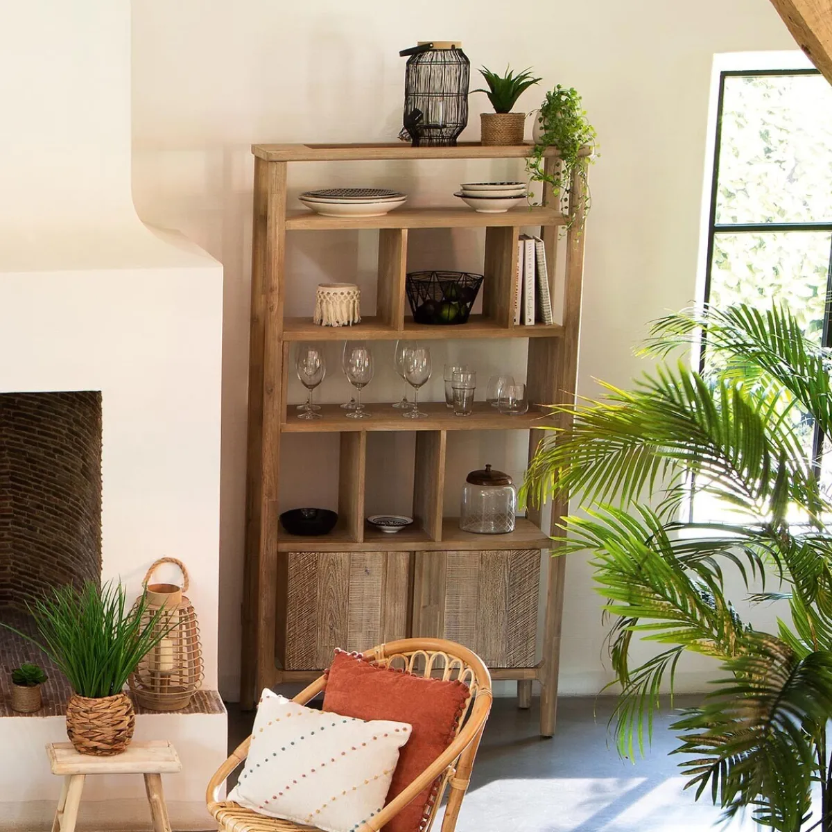 Pour un esprit campagne chic, détournez cette bibliothèque en vaisselier tendance. À la place de livres, exposez de jolis bols en faïence, une collection de pichets et des verres aux formes décoratives.