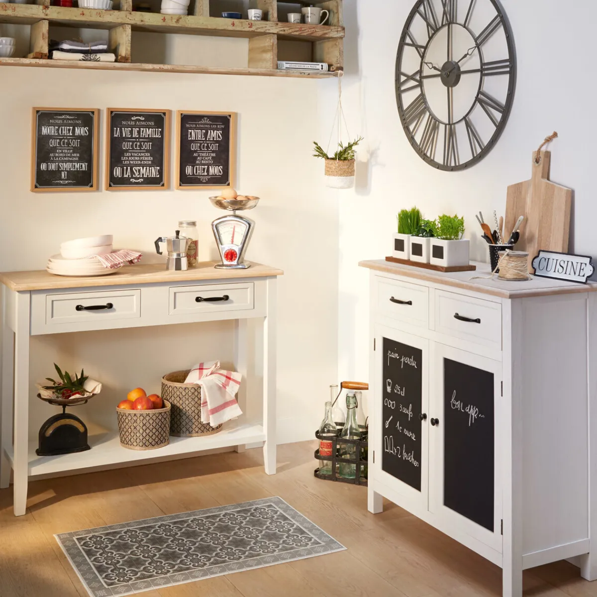 L’entourage du cadre est en fibre de bois. Le message est inscrit sur du papier qui imite très bien l’ardoise. Ça nous rappelle l’école de notre enfance avec les leçons écrites au tableau. L’ensemble éveille une douce nostalgie.