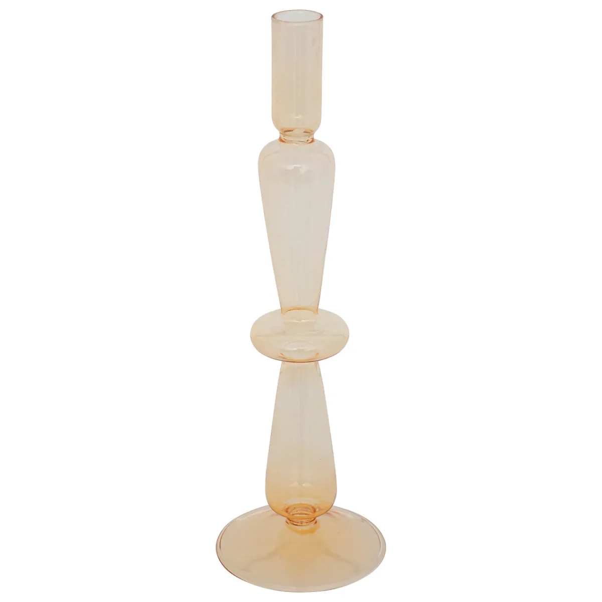 Design et élégant, ce chandelier en verre possède des dimensions généreuses. Son pied travaillé et sa couleur délicate le rendent à la fois précieux et chaleureux. Vous pourrez déposer une longue bougie dans le col pour profiter d’une douce luminosité.
