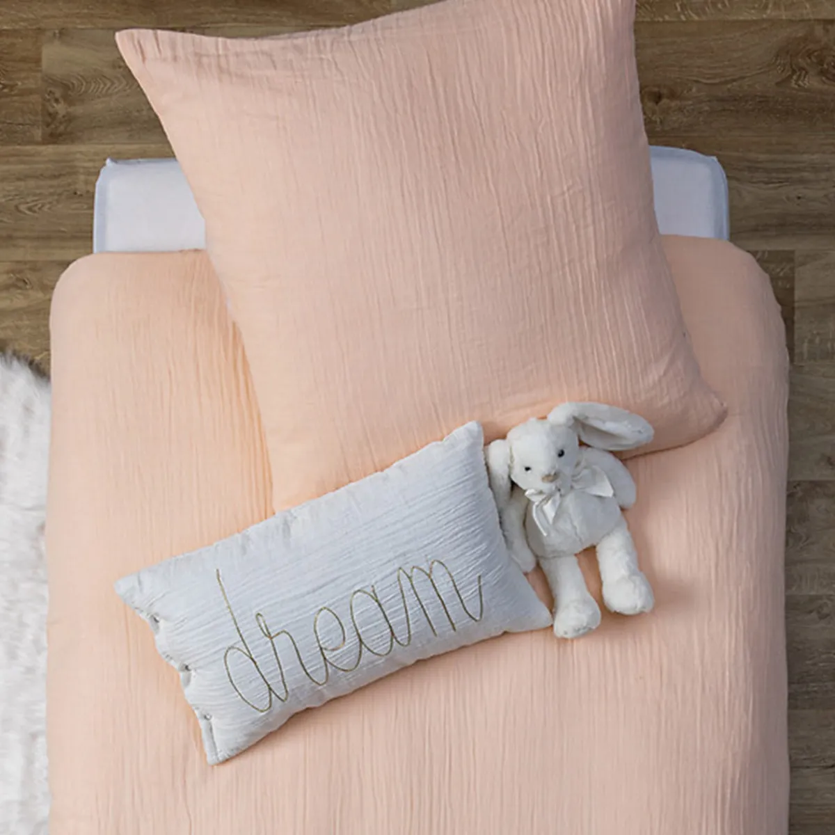 Collectionnez plusieurs coussins dans des coloris assortis pour faire de cette chambre d’enfant un véritable cocon!