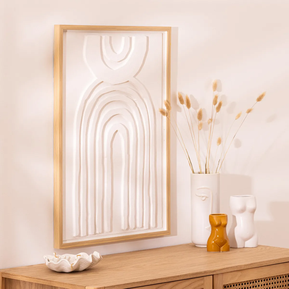 Montée sur un cadre en bois, la déco murale « Bobby » obéit à des dimensions harmonieuses et se distingue par son motif en relief très contemporain. Monochrome, elle se mariera volontiers avec du mobilier en bois aux lignes esthétiques et vous permettra de personnaliser votre intérieur dans un style simple et épuré.