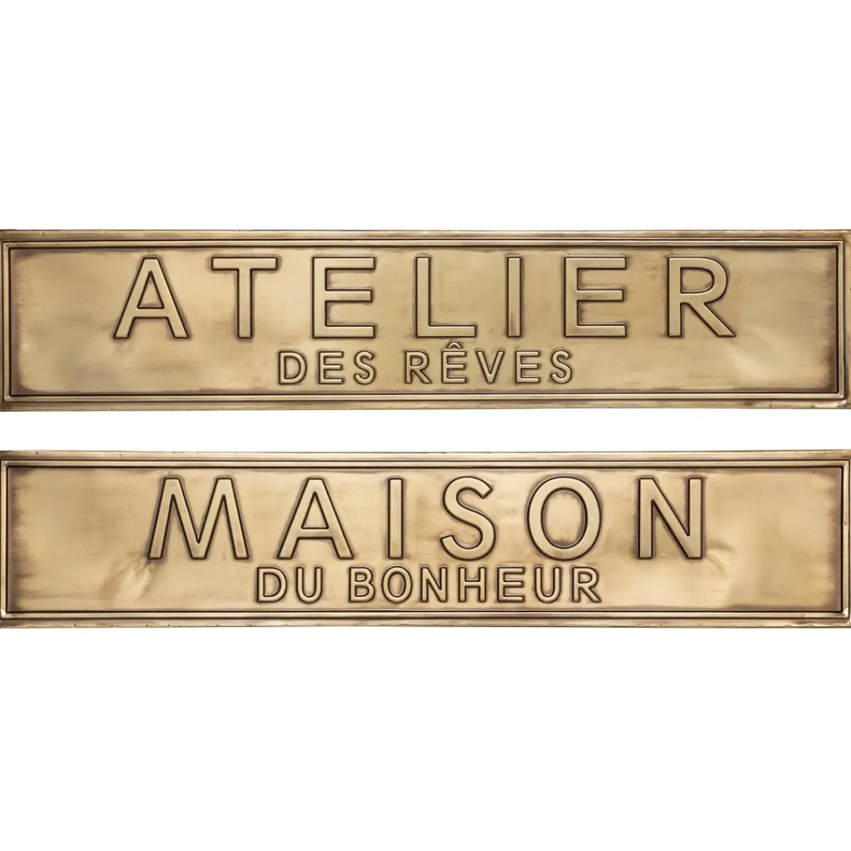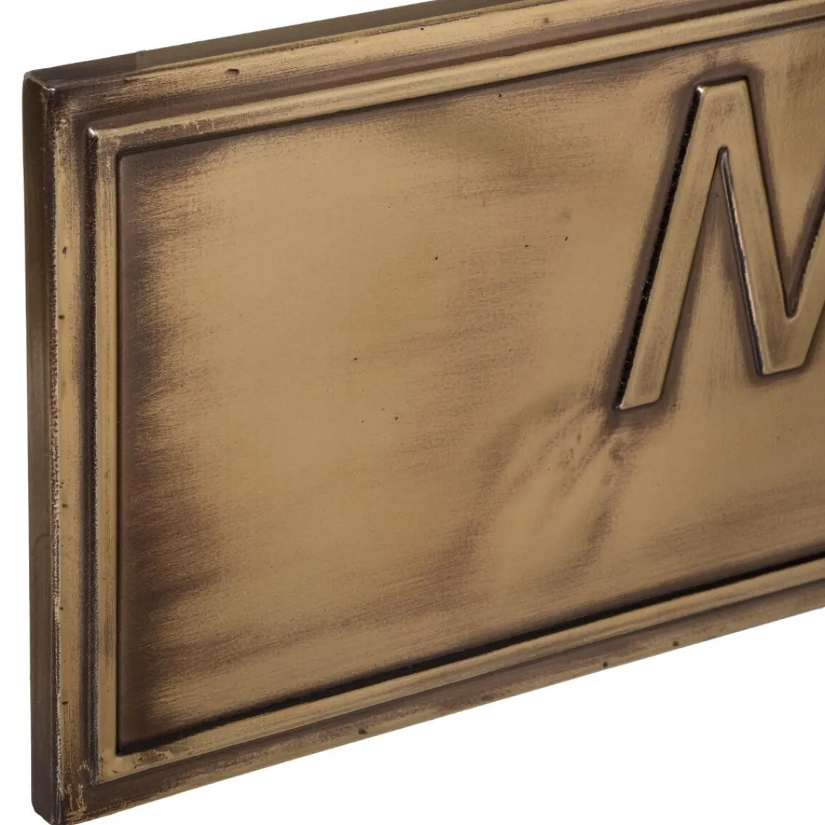 Cette plaque en métal trouvera sa place dans un décor industriel, associée à une console Atmosphera noire aux détails en laiton.