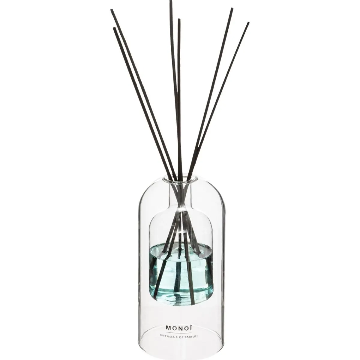 On craque pour les lignes épurées et le jeu de transparence de ce diffuseur de parfum. Le flacon en verre d’une contenance de 150 ml est assorti de 6 bâtonnets pour une durée de diffusion de 12 semaines. Son parfum Monoï, aux notes solaires et florales, est une ôde au voyage et à l’évasion.