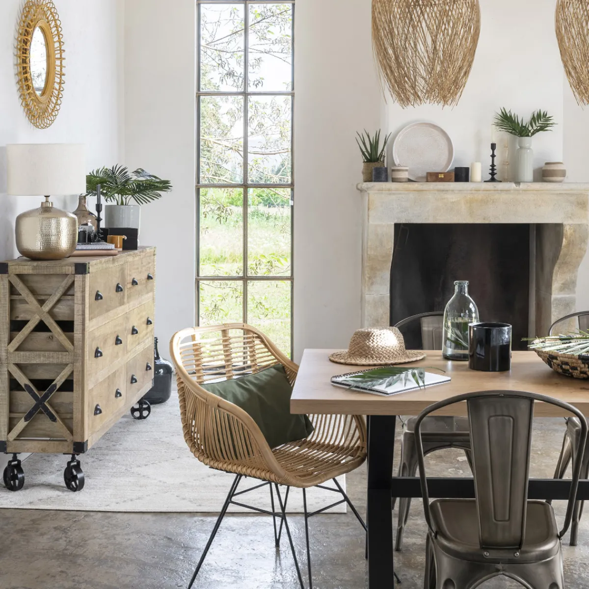 Pour créer un espace harmonieux dans votre pièce, associez votre fauteuil « Koeta » en rotin et métal à une table aux pieds en bois Atmosphera.
