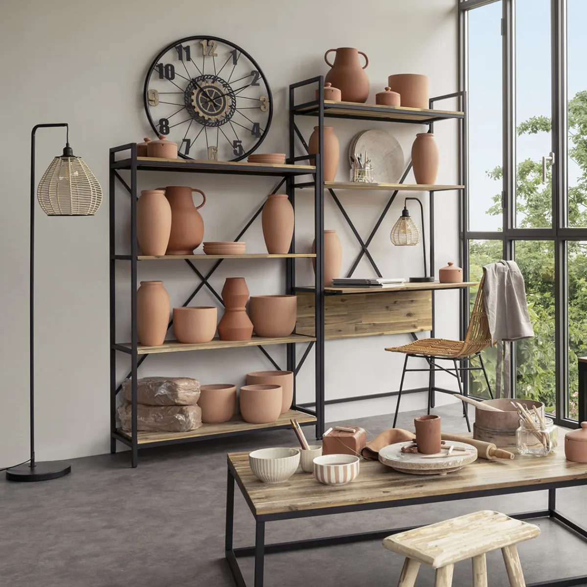 Installez votre horloge « Mohan » au-dessus d’un buffet en bois et métal Atmospheraet profitez d’un mix de matières réussi!