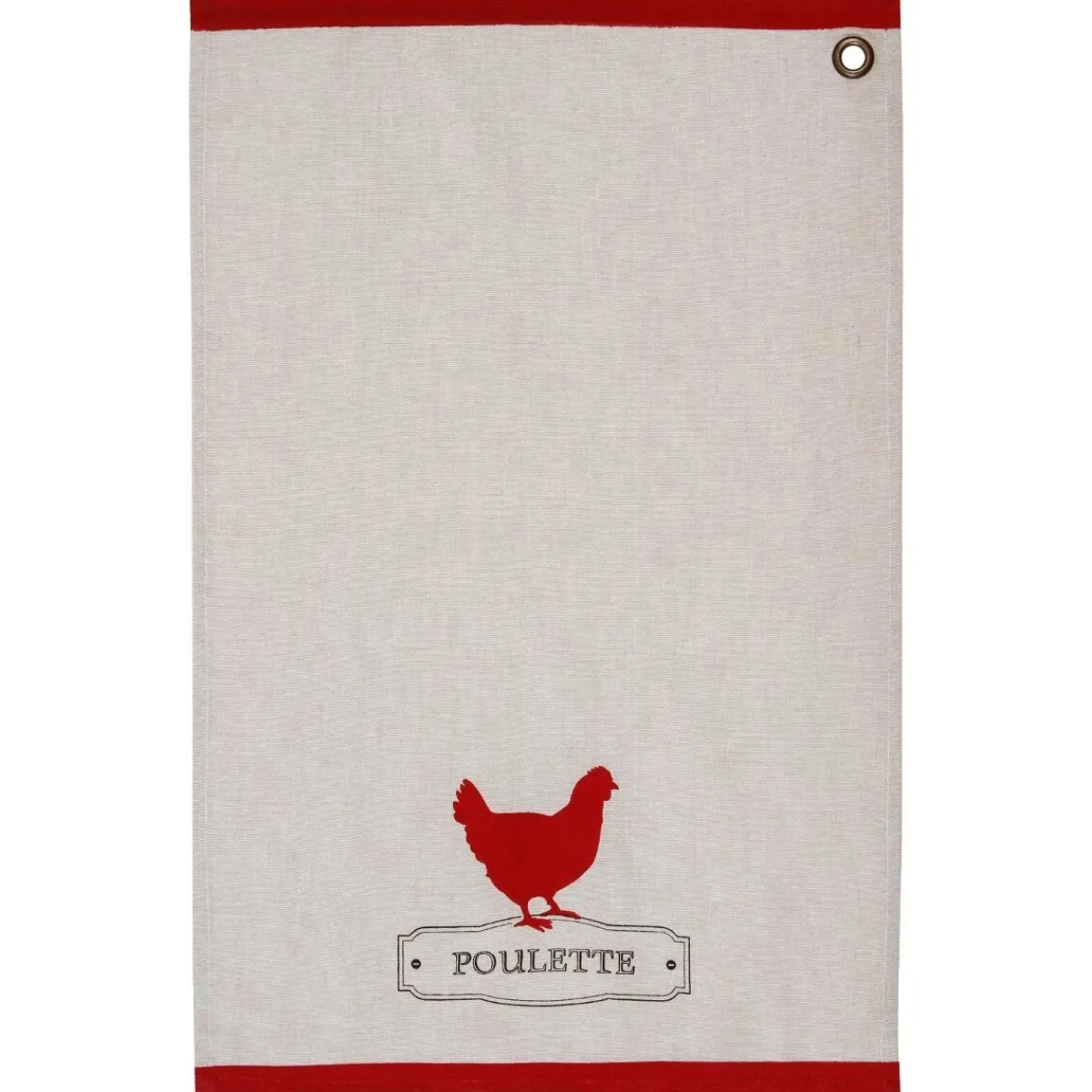 Ce lot de 2 torchons imprimés « poule » décline deux imprimés dans un même format standard. Un torchon est rayé dans des tons très vintage, le second offre un tissu brut et uni, agrémenté d’une petite poule colorée et perchée sur une plaque. Réalisés en pur coton, ils sont percés d’oeillets métalliques permettant de les suspendre. Parfaits pour égayer une cuisine, ils se lavent en machine.