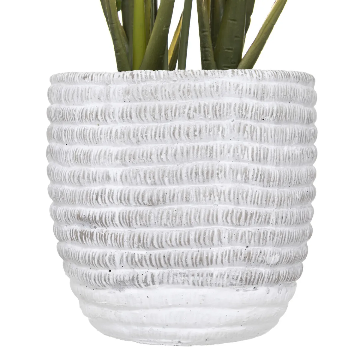 Avec son pot en ciment, ses tiges vertes et bien dressées surmontées de ses fleurs blanches typiques, le lys de la paix Atmosphera semble tout droit sorti de la boutique du fleuriste.