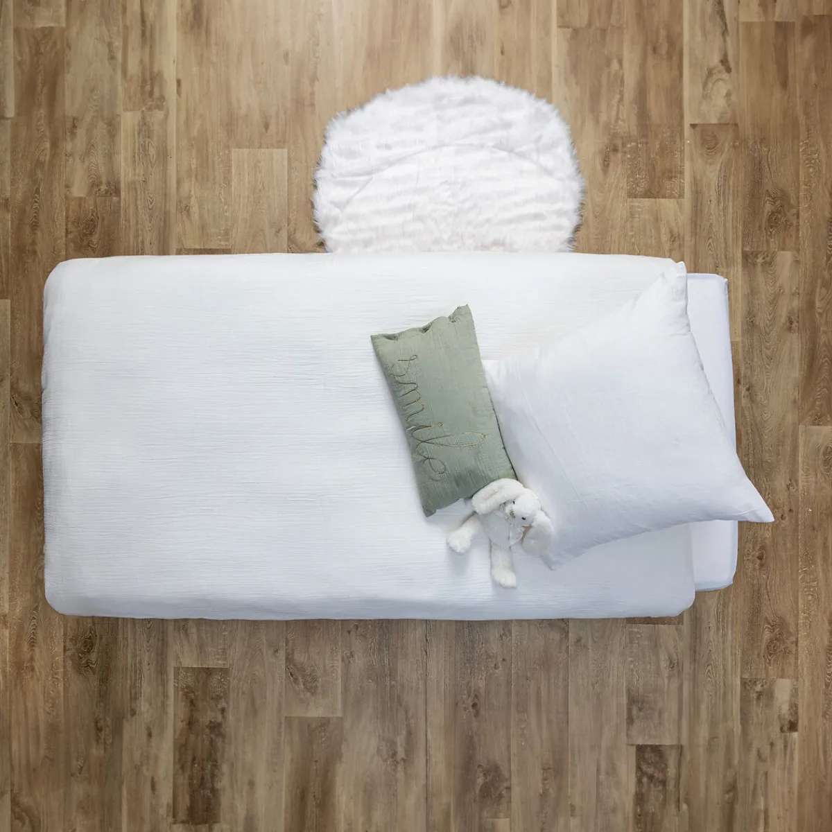 Réalisé dans coton très doux, la parure de lit enfant « Lili » se lave en machine et elle est composée d’une housse de couette ainsi que d’une taie d’oreiller carrée. Unie, elle se mariera facilement avec vos éléments déco et vous pourrez choisir des coussins colorés pour l’accessoiriser.