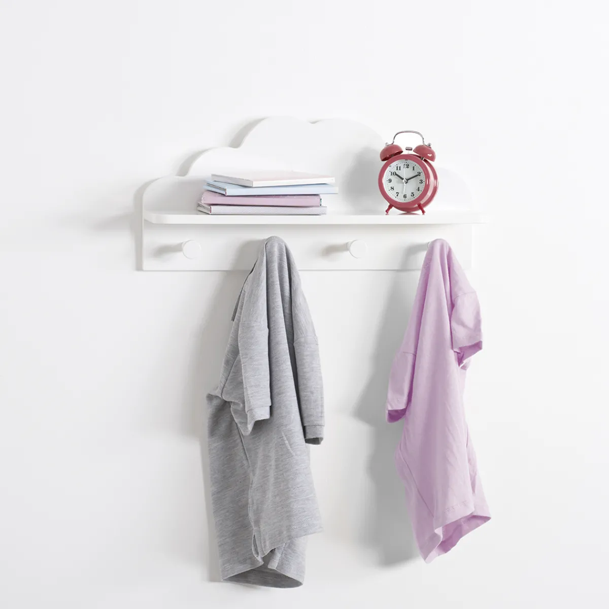 Bien pensée, la patère « Nuage » est dotée d’une petite tablette. Celle-ci permettra notamment à vos enfants d’y déposer leurs petits jouets. Ils pourront également utiliser les 4 crochets afin d’y suspendre leurs vêtements et écharpes.