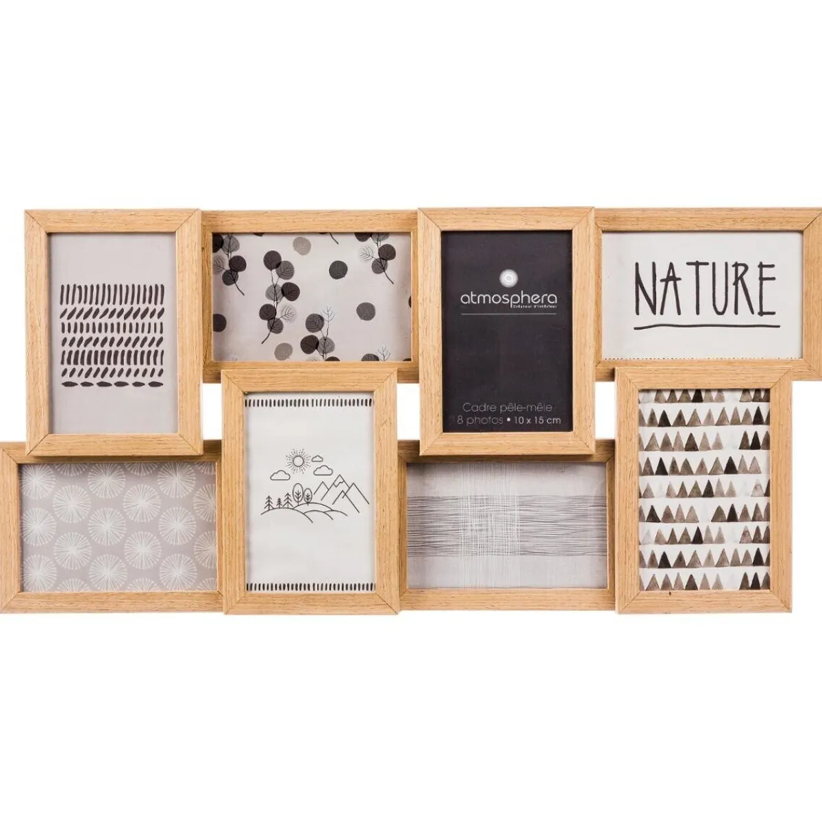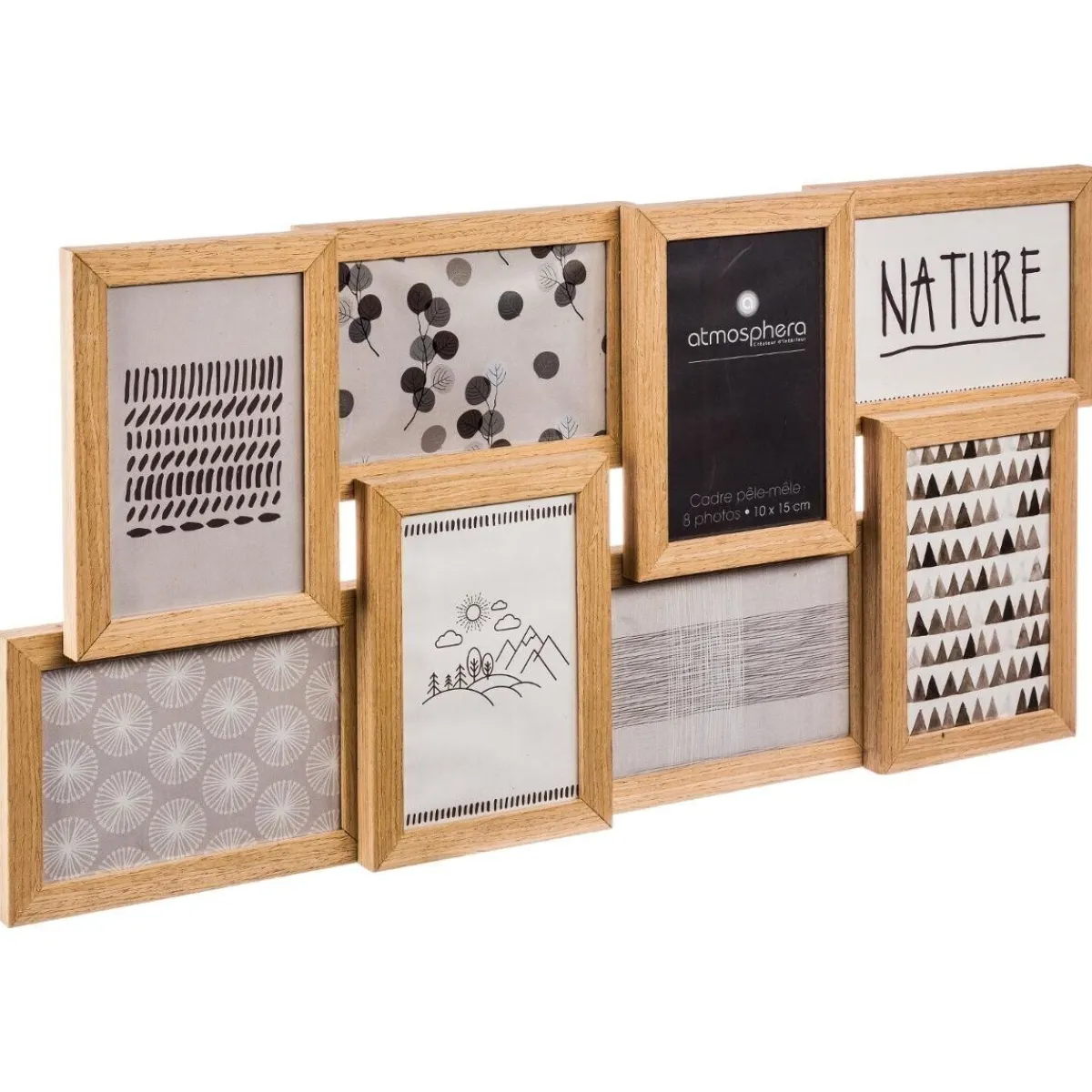 Tout en longueur, ce pêle-mêle est composé de 8 cadres en bois, enchevêtrés et superposés. Long de 58,5 cm pour une hauteur de 29 cm, il est très facile à fixer sur un mur, dans une entrée comme dans une chambre ou un salon. Vous pourrez y exposer vos photos préférées ou des cartes rapportées de vos voyages.