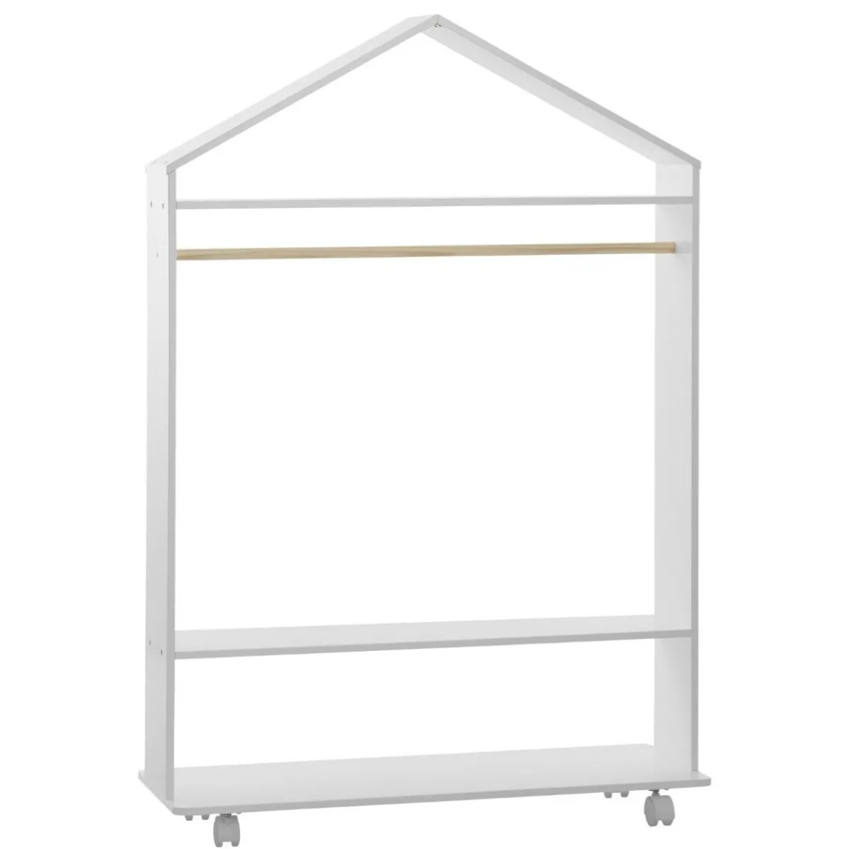 Cette penderie à roulettes pour enfant a tout pour plaire : elle est légère, facilement maniable grâce à ses roulettes et possède plusieurs espaces de rangement. Les étagères sont idéales pour ranger les vêtements pliés, tandis que la tringle permet de placer de nombreux cintres.