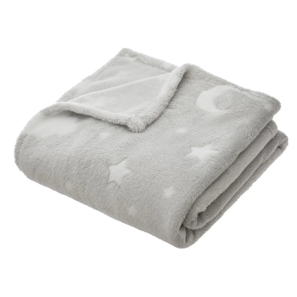 Ce plaid se distingue par ses motifs de lunes et d’étoiles réalisés dans un tissu contrastant qui brille dans le noir. Il apporte une atmosphère féérique et envoûtante dans la chambre.