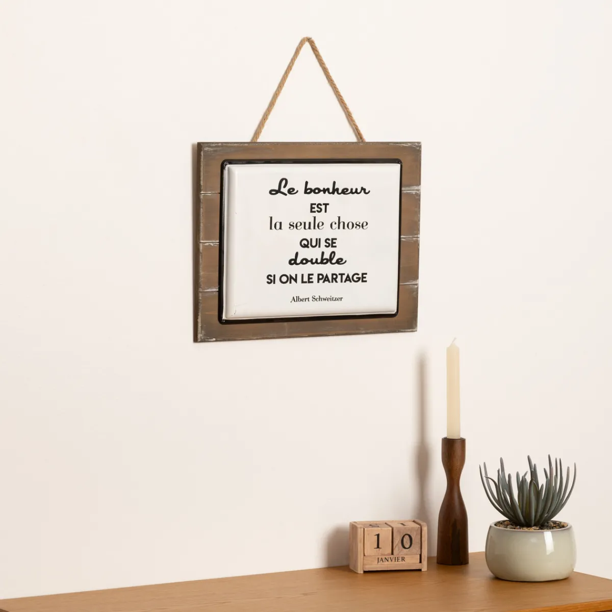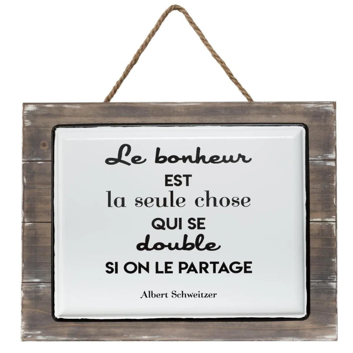 Cette plaque murale rectangulaire en métal est encadrée par une structure en bois. Ce joli mix de matières lui confère un aspect brut et authentique. Une citation joyeuse est inscrite avec différentes polices d’écriture. Pour l’installer, il vous suffit de suspendre la plaque « Loki » à un crochet grâce à la cordelette en chanvre.