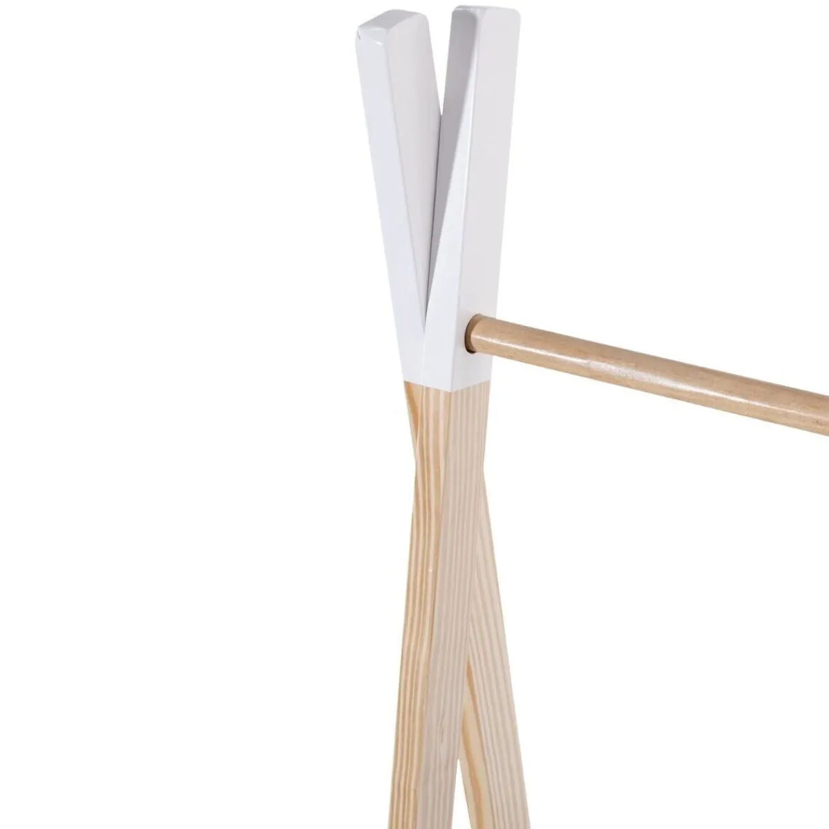 Les montants du portant se croisent de manière à former de petits tipis. Une particularité qui se fondra parfaitement dans une chambre à l’esprit safari ou bohème.