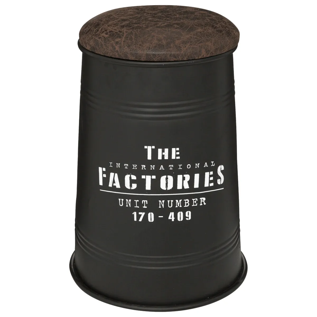 Réalisé à partir d’un bidon cylindrique en acier, le pouf « Joao » est doté d’une assise rembourrée et amovible qui ouvre sur un espace de rangement. Peint dans un ton mat et décoré d’inscriptions au style vintage, il vous permettra de ranger des plaids ou de faire ponctuellement place nette dans votre intérieur. L’assise confortable imite le cuir vieilli.