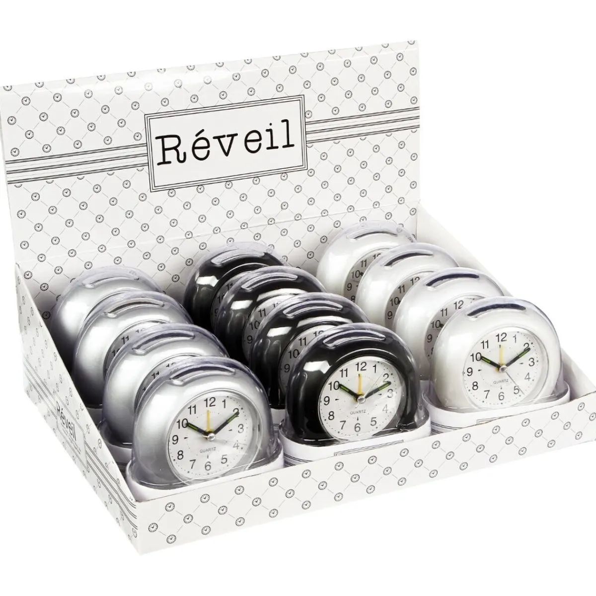 Ce réveil rond vous accompagnera partout, car il fonctionne avec des piles. Ses lignes contemporaines et sobres s’adapteront sans mal à votre intérieur. Le cadran à gros chiffres, les aiguilles fluorescentes et le rétroéclairage vous donneront l’heure même la nuit. Le grand bouton sur le haut vous permettra d’éteindre la sonnerie très facilement.