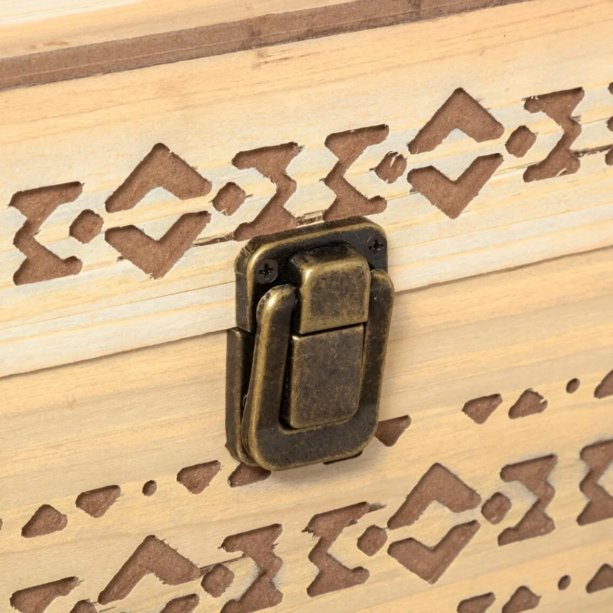Ces éléments de rangement apporteront une touche exotique à votre pièce à vivre grâce à leur motif aztèque. Ils se déclinent en 4 formats différents et se prêtent à divers usages. Dotés d’un fermoir à effet patiné, ils sont aussi munis de poignées en métal sur les côtés.