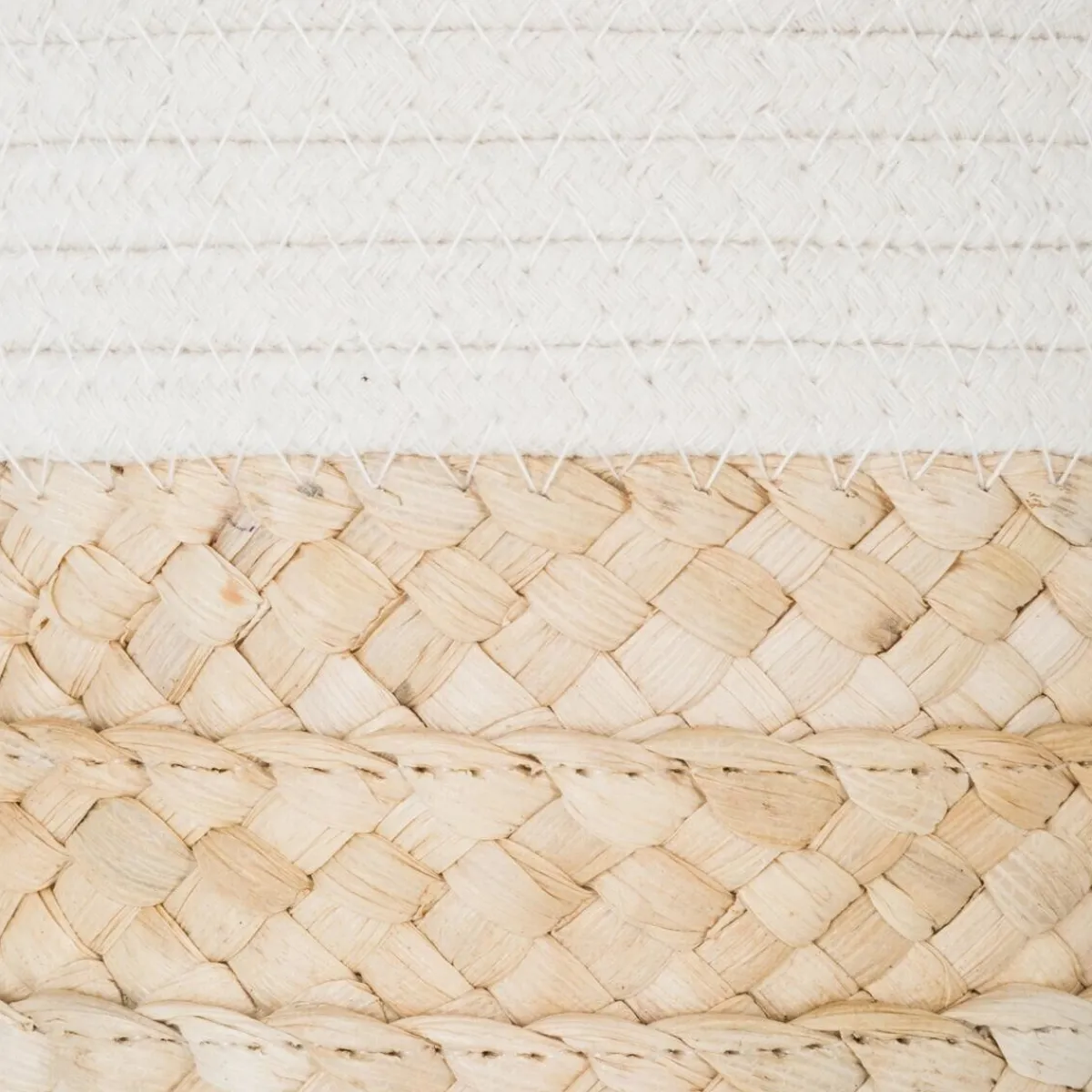 Ces paniers associent la beauté de la fibre de maïs tressée à la douceur du coton, qui forme un bandeau entourant l’ouverture. Les poignées en tissu permettent de les transporter facilement.