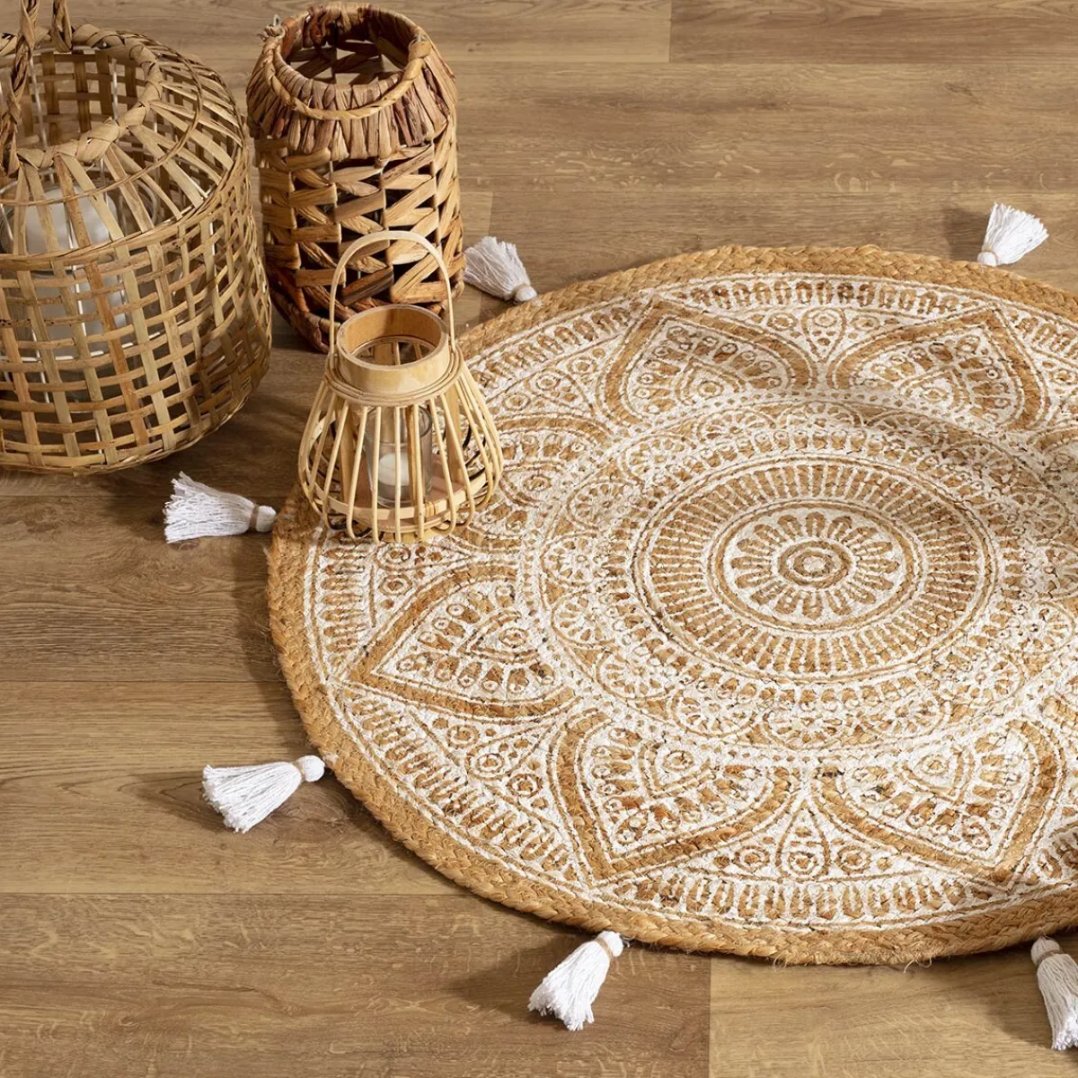Le tapis imprimé à pompons « Rosalie » se caractérise surtout par son grand mandala contrastant. Symbole de méditation et de paix, il diffusera une atmosphère apaisante dans votre espace.