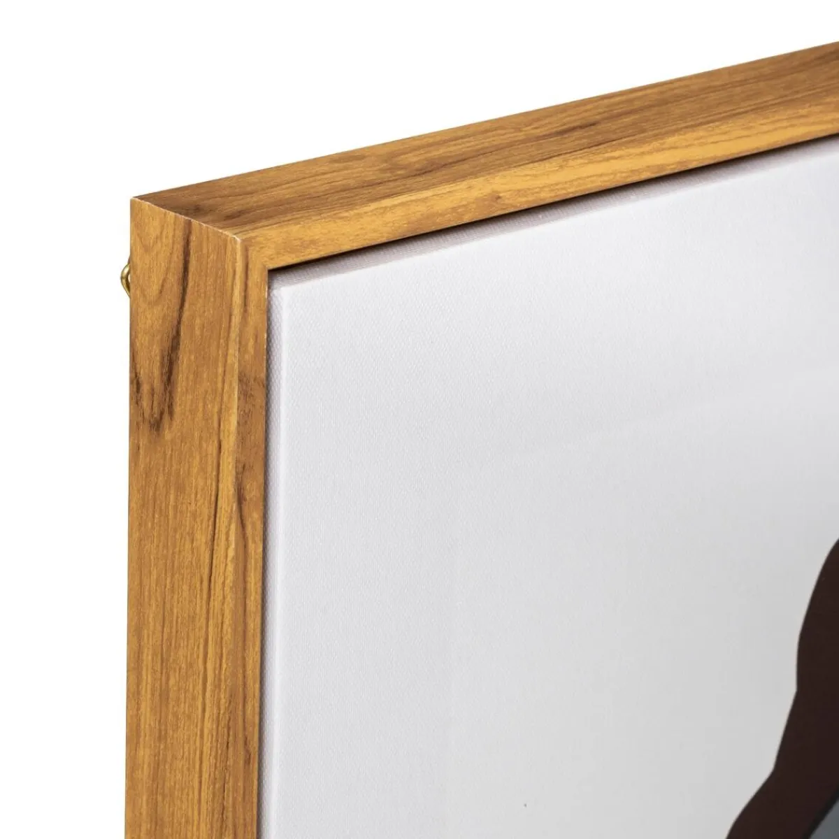 La toile imprimée « Elina » est mise en valeur par son cadre en fibre de bois qui lui apporte de la chaleur, tout en rappelant le coloris de l’oiseau. Le motif stylisé représentant un perroquet est parfait dans une ambiance exotique plutôt moderne.