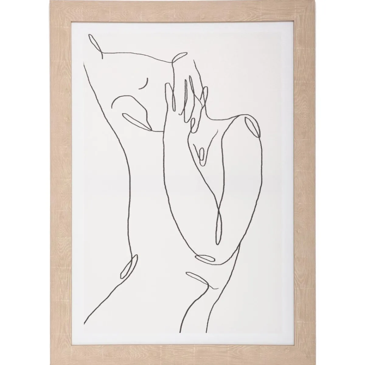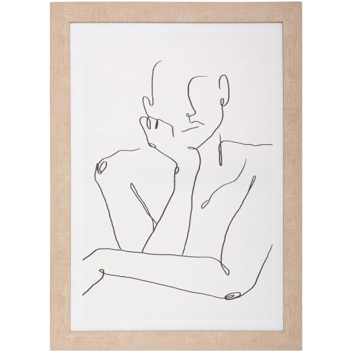 Élégance et simplicité des traits caractérisent cette toile imprimée. Rectangulaire et de format portrait, elle est insérée dans un cadre en fibres en bois.