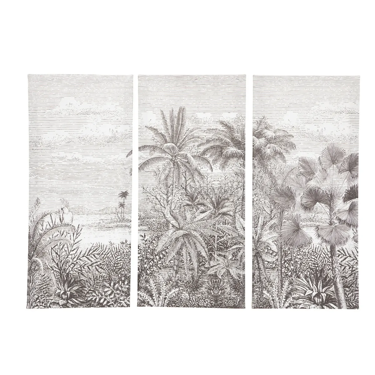 La toile imprimée « Ariel » obéit à un format rectangulaire et des dimensions qui lui permettront de trouver sa place même dans de petits espaces. Dans un esprit colonial, elle représente un triptyque en noir et blanc qui déposera une touche vintage dans votre déco.