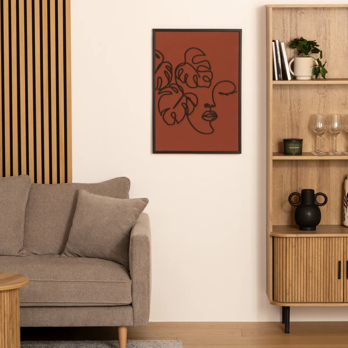 Accrochez votre toile imprimée « Julie » au-dessus d’un buffet en bois Atmosphera au style épuré et profitez d’un ensemble harmonieux.