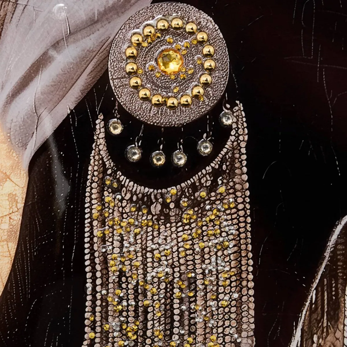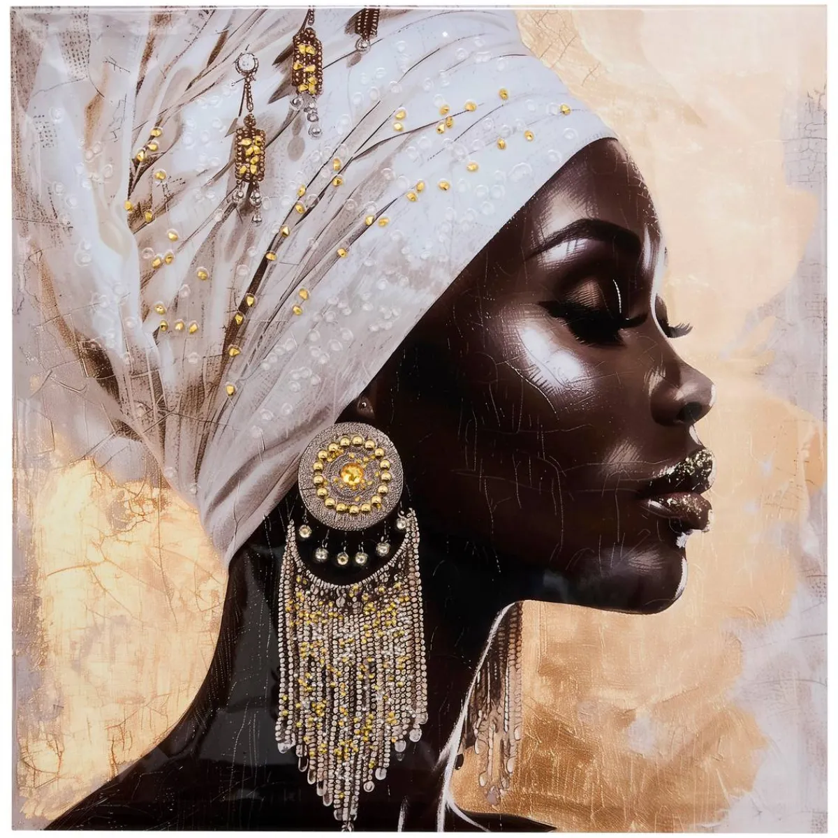 Cette toile carrée représente une femme africaine agrémentée de perles en relief avec une impression en doré métallisé. La toile imprimée Mercury se mariera volontiers avec des meubles en bois ou en métal tels qu’une console Atmosphera.