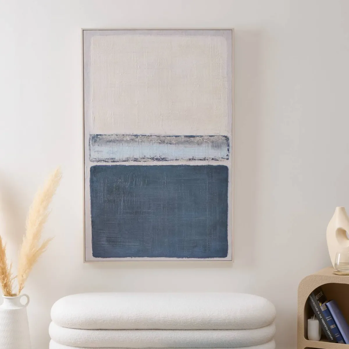 Cette toile rectangulaire est composée de peinture acrylique avec un effet en relief. La toile peinte encadrée Jimena possède des dimensions conséquentes. Ajoutez quelques accessoires dans les mêmes teintes comme des coussins Atmosphera pour une belle harmonie dans votre pièce.
