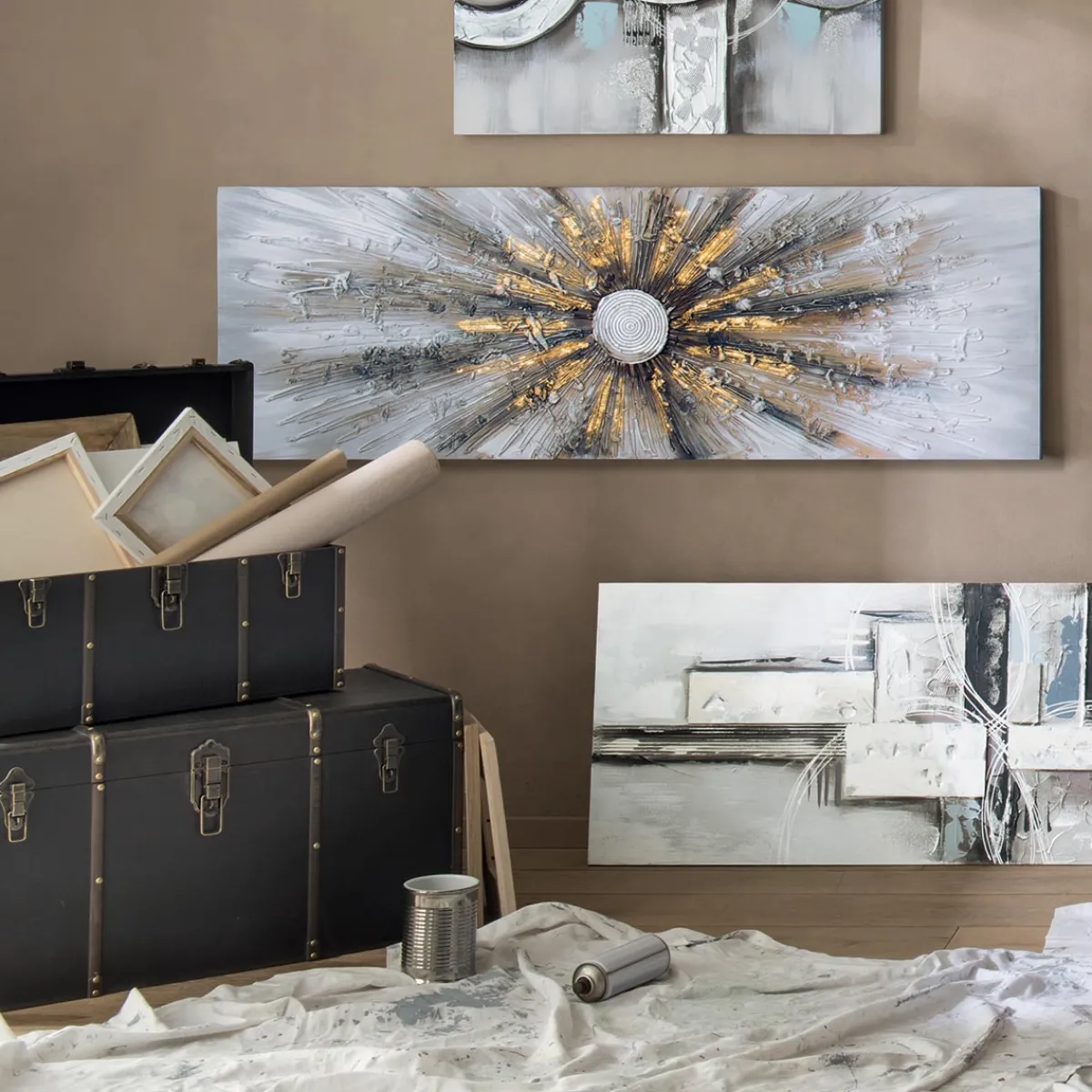 Très décoratif dans la salle de séjour, ce tableau grand format pourra être associé à un miroir doré Atmosphera.