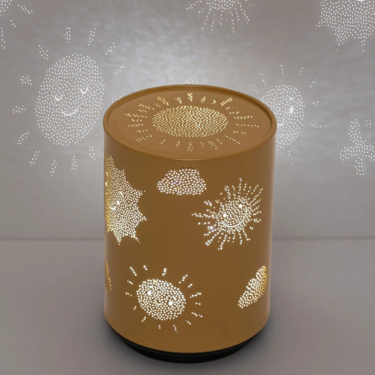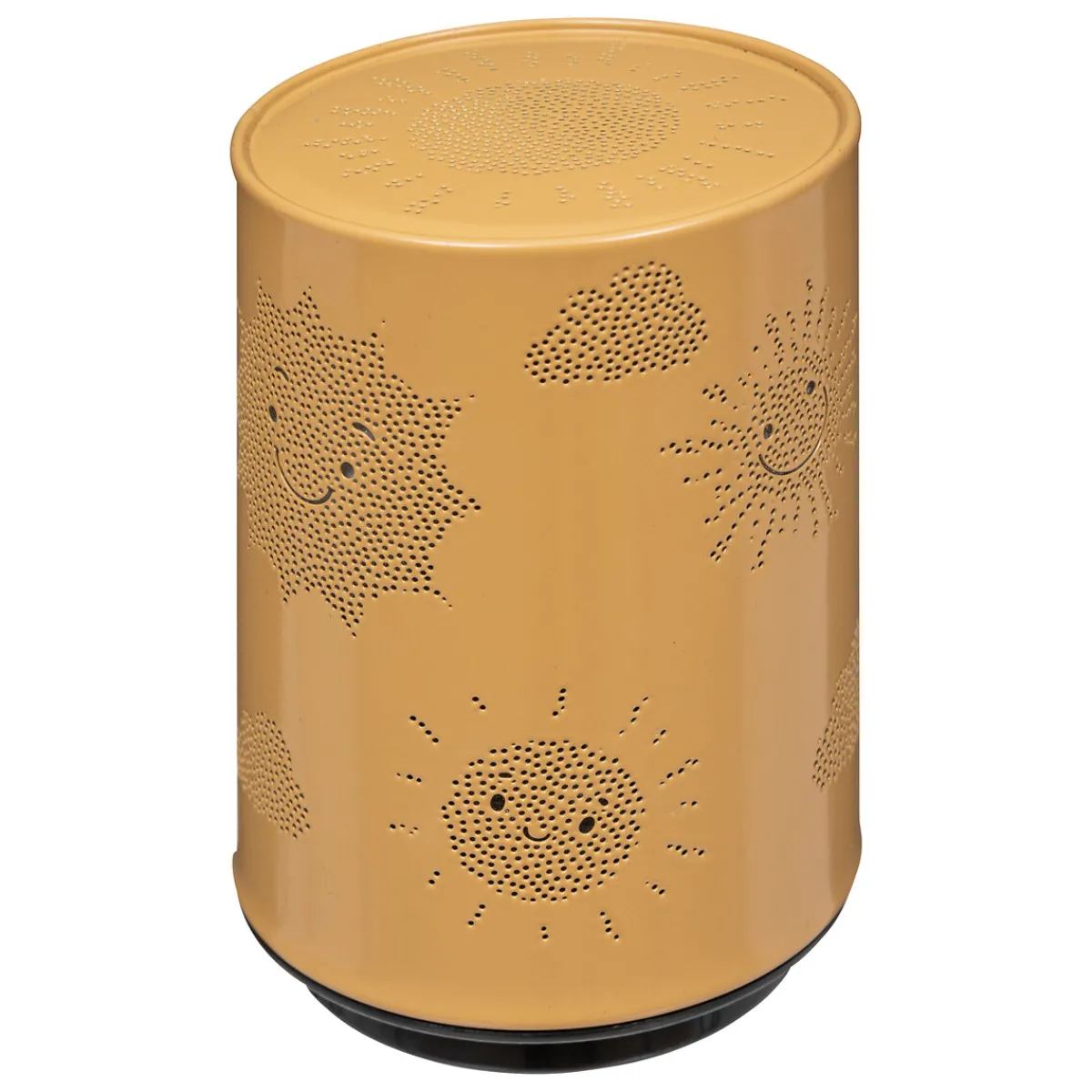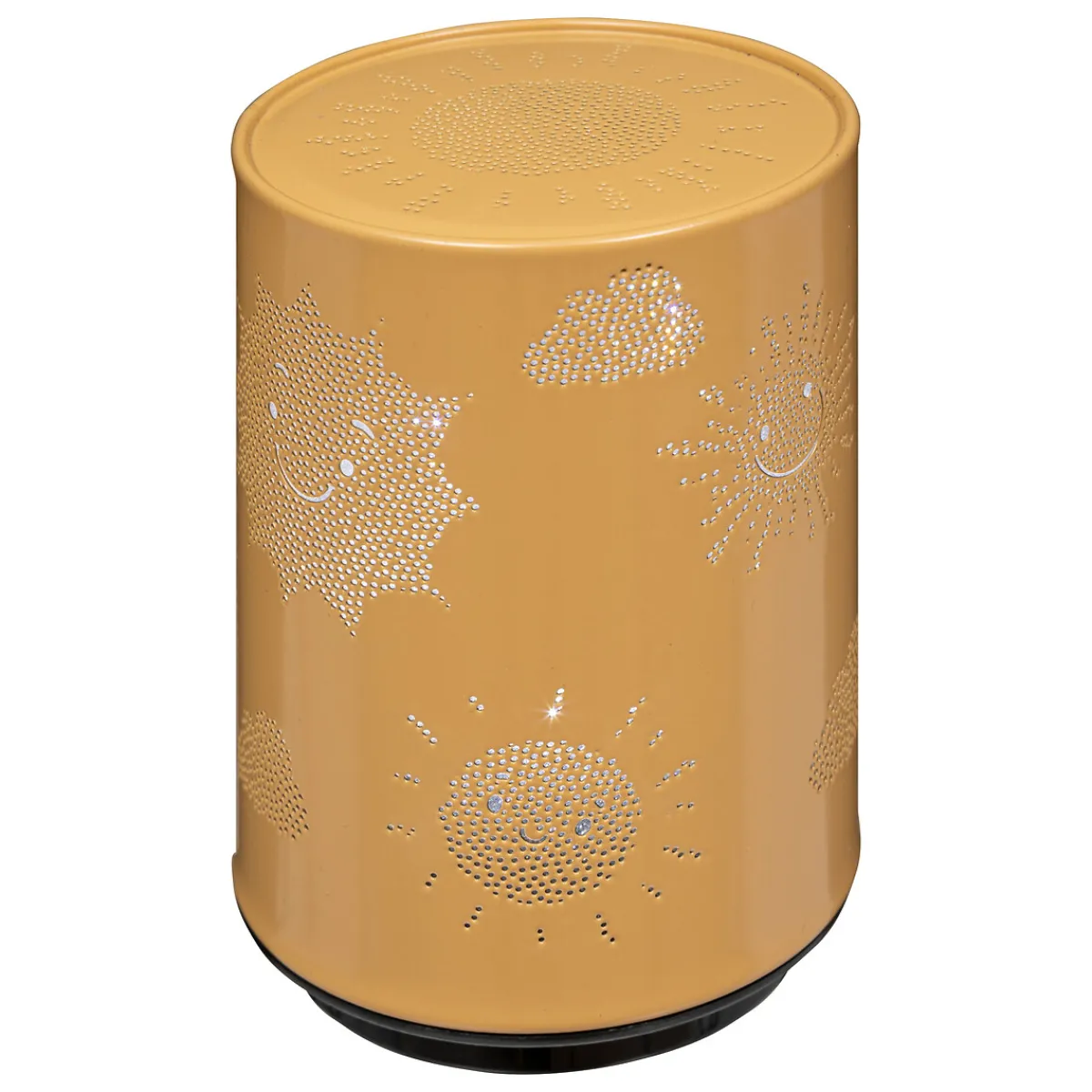 Réalisée en métal teinté et ajouré de motifs, cette veilleuse enfant joue sur un style ethnique chic et déposera une touche colorée dans votre déco. Les petits motifs souriants qui décorent le métal créeront un effet magique une fois la veilleuse allumée dans l’obscurité!