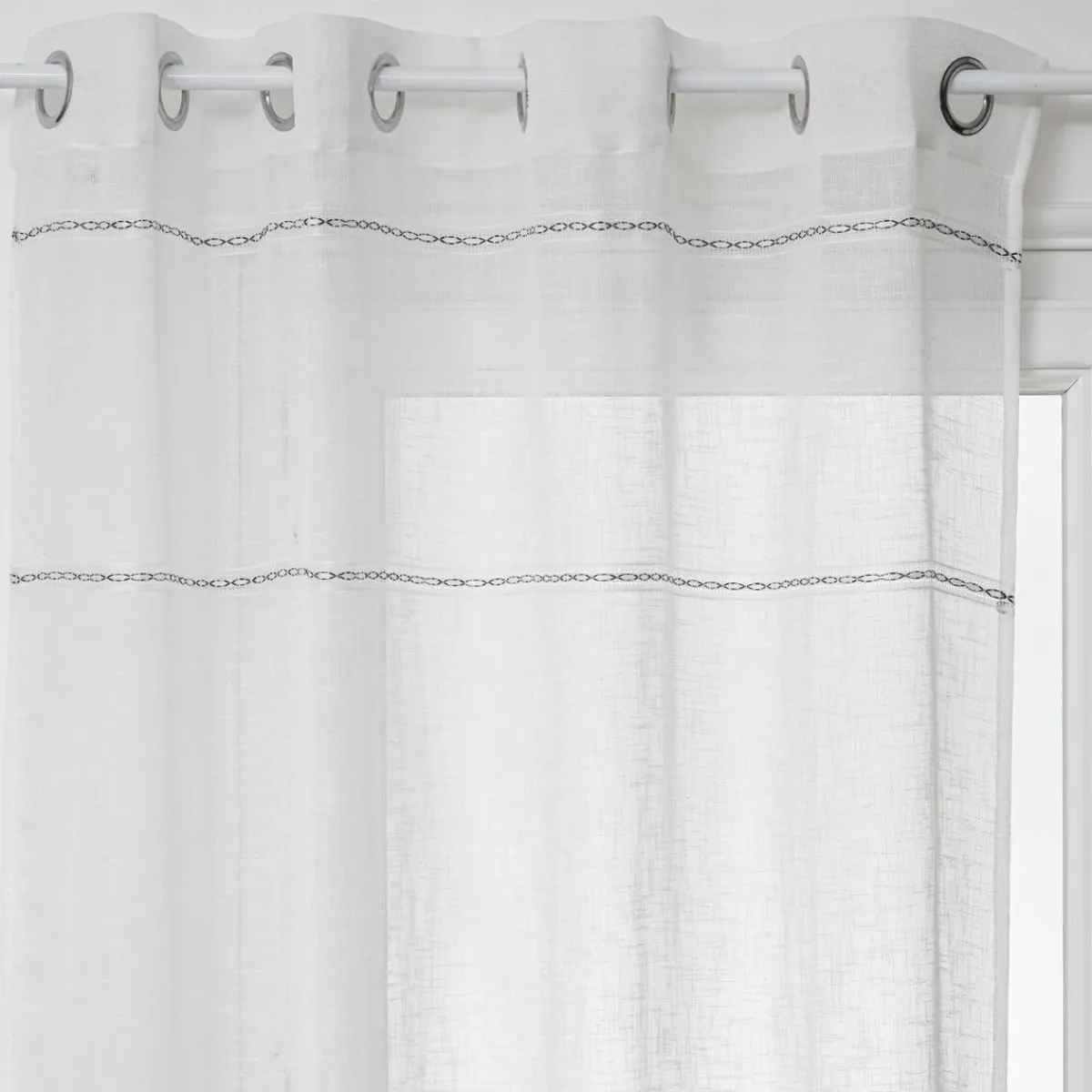 Sept lignes ajourées horizontales signent l’élégance de ce voilage qui apportera une petite touche orientale à votre déco. Les oeillets en métal faciliteront son montage sur tringle.