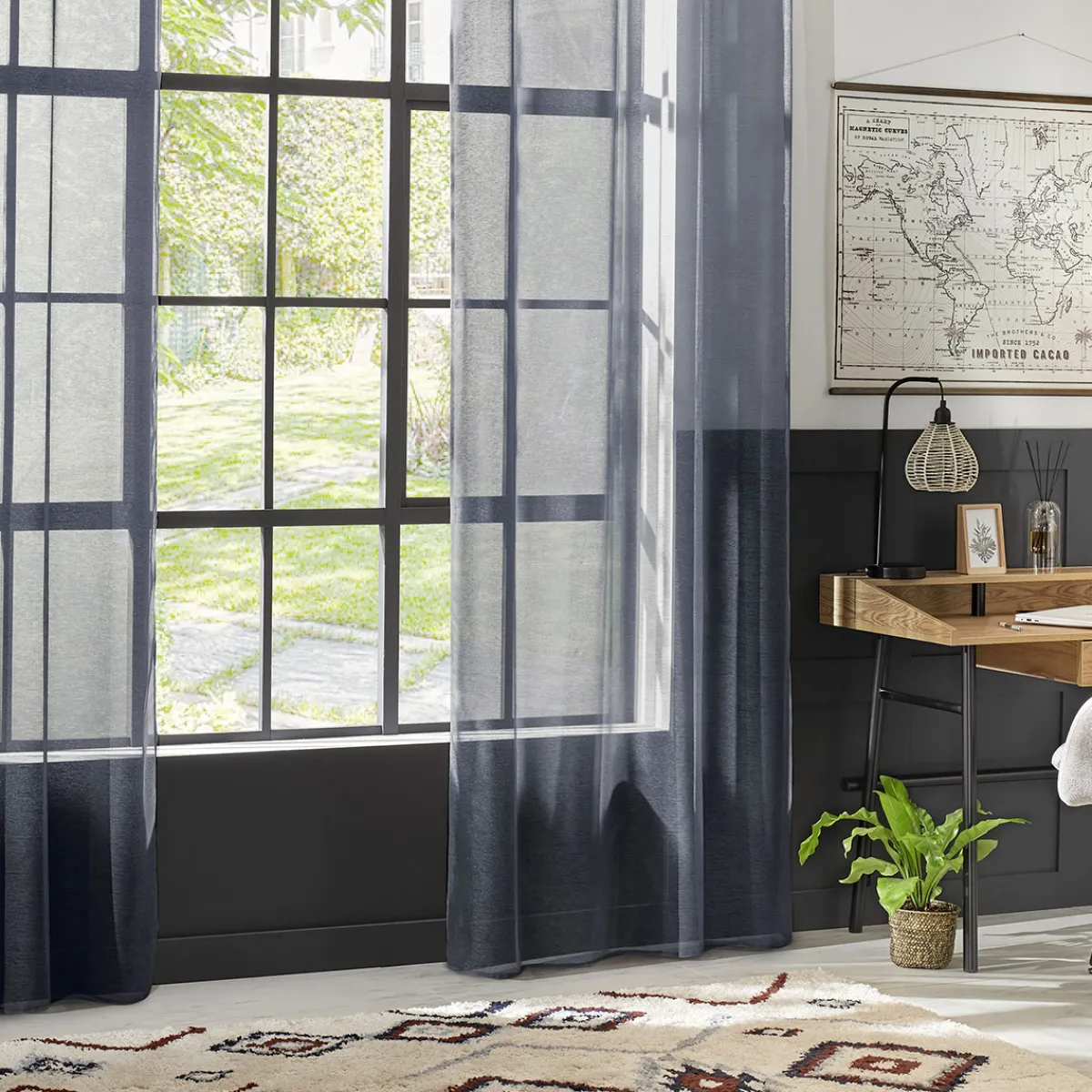 Ce rideau au design épuré laisse passer la lumière et donne une ambiance feutrée à votre espace. Avec ses oeillets métalliques, vous pourrez le glisser aisément à travers une tringle. Le voilage « Moly » habillera aussi bien une fenêtre qu’une porte-fenêtre. Fait en polyester, il vous suffit de le laver en machine.