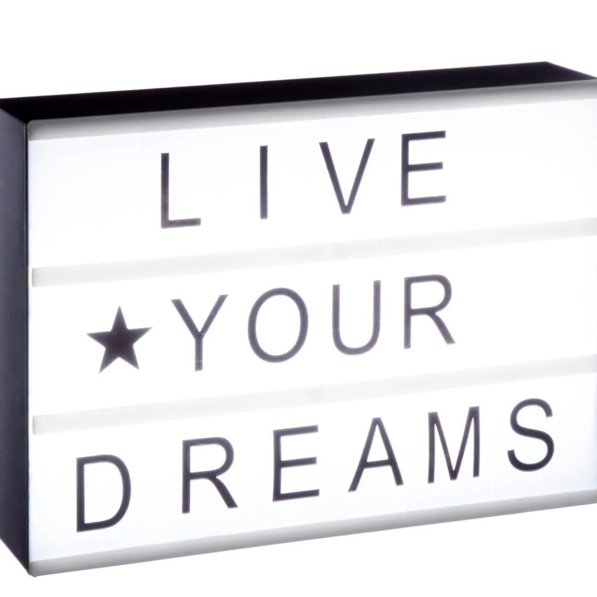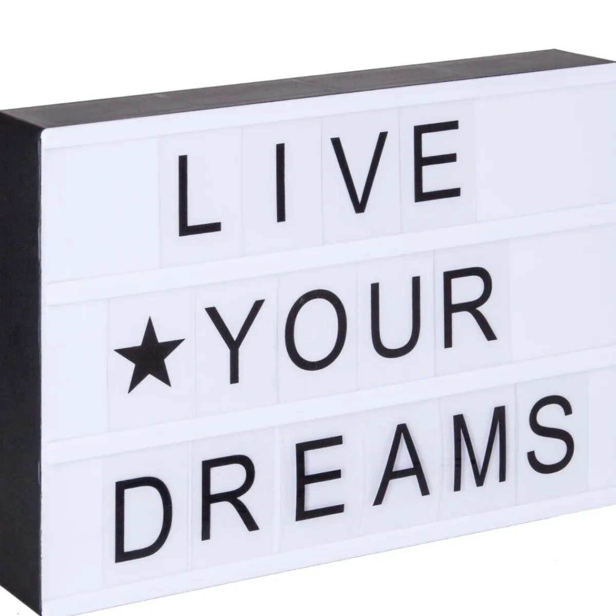 Imaginée dans un format A4, cette boîte lumineuse vous permettra de rédiger des messages au gré de vos envies. Dotée de 82 lettres et symboles, elle diffusera une lumière très douce. Cette boîte est équipée d’un interrupteur et fonctionne grâce à des piles.