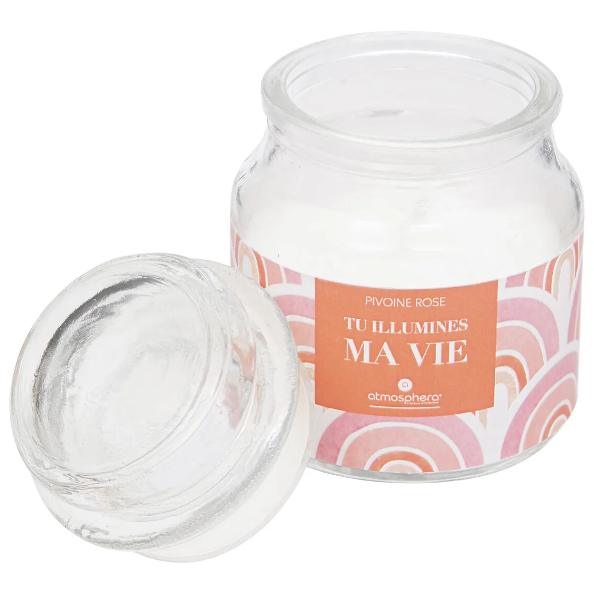 La bougie se trouve dans un pot en verre transparent avec un couvercle. Son étiquette arbore des dessins colorés avec une phrase positive. Avec son petit format, vous pourrez facilement glisser cet objet déco sur le meuble de votre choix.