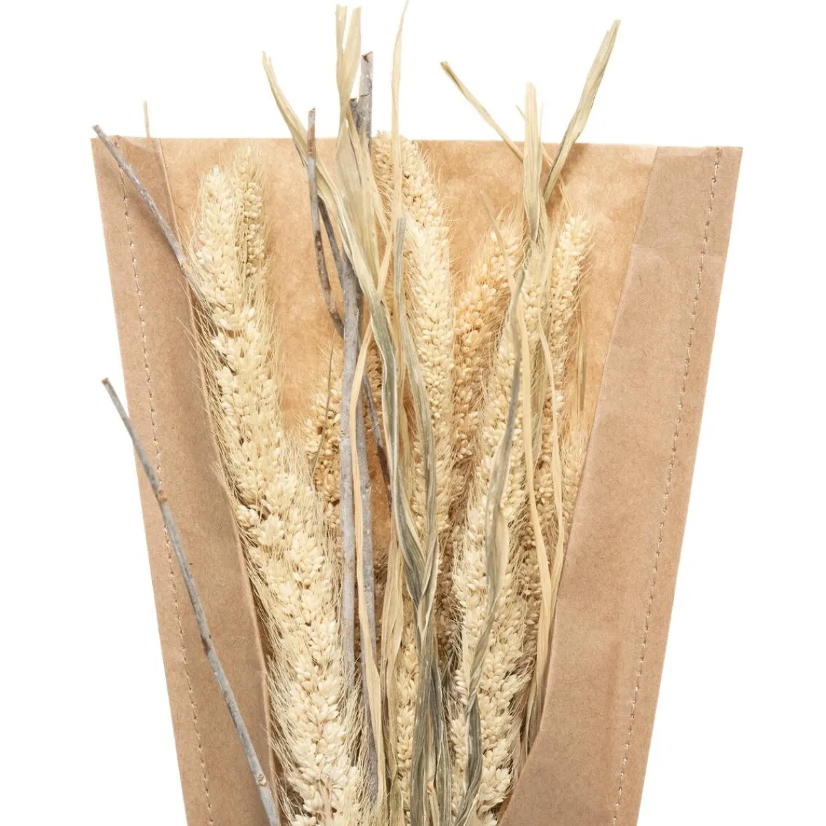 Ce bouquet de tiges et de plantes séchées aidera à créer une atmosphère bucolique chez vous. Il est présenté dans du papier kraft et maintenu par un noeud en corde naturelle.