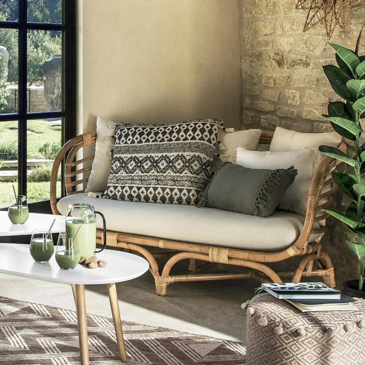 Ce canapé en rotin s’inscrit dans la tendance bohème chic. Son allure naturelle et son design travaillé en font un mobilier élégant et propice à l’évasion. Vous voyagerez sans bouger de votre siège. Il s’intègrera facilement à votre salon ou à une véranda.