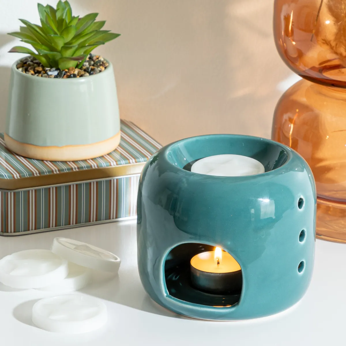 Ce coffret très authentique est composé d’un brûle-parfum en céramique émaillée et colorée, sur le haut duquel des rondelles de cire parfumée diffuseront une douce senteur de jasmin. Un emplacement est prévu à l’intérieur pour accueillir une bougie chauffe-plat et le support ajouré procurera une lumière tamisée dans votre intérieur.