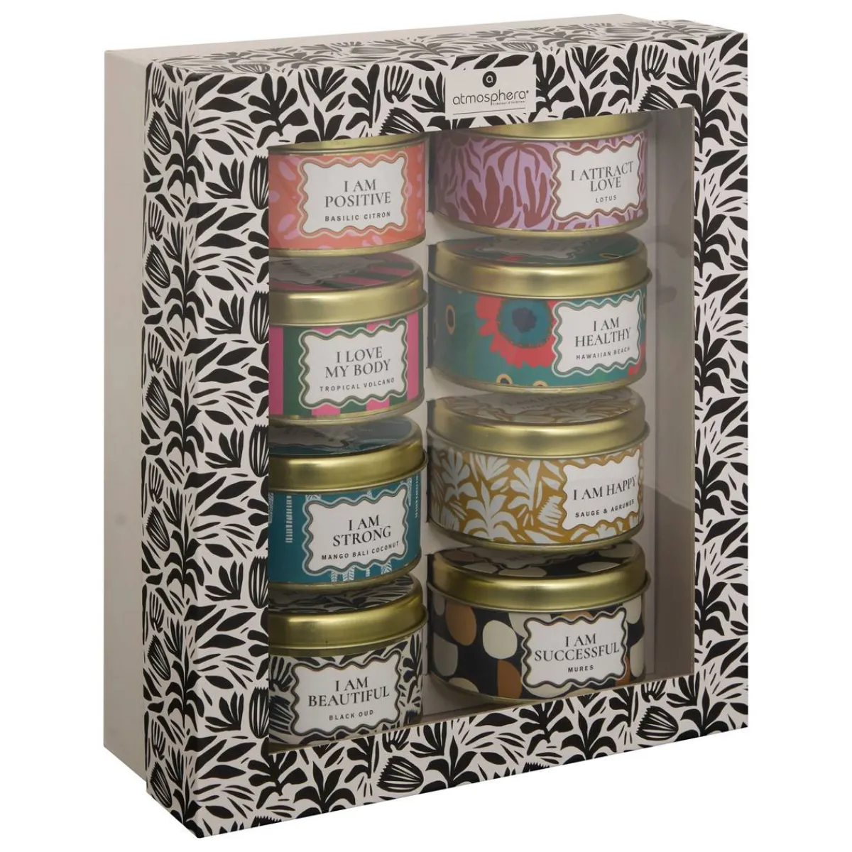 Le coffret sans support Sujan Atmosphera est composé d’une bougie de 520 g placée dans une boîte en métal vieilli dont le couvercle permet à la fois de l’éteindre et de préserver son parfum. Le centre du contenant est imprimé de motifs colorés et chaque senteur correspond à un message positif. Offrez ce coffret sans compter ou collectionnez plusieurs parfums pour créer une ambiance chaleureuse dans votre univers !