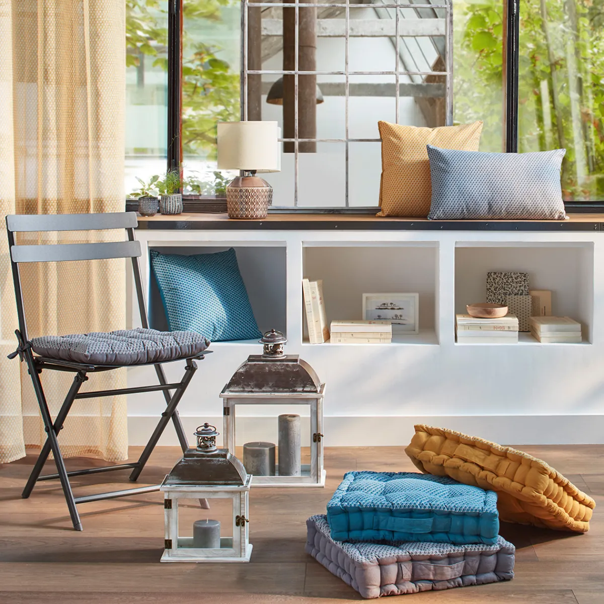 Customisez votre canapé ou votre lit avec des coussins Atmosphera de formes différentes.