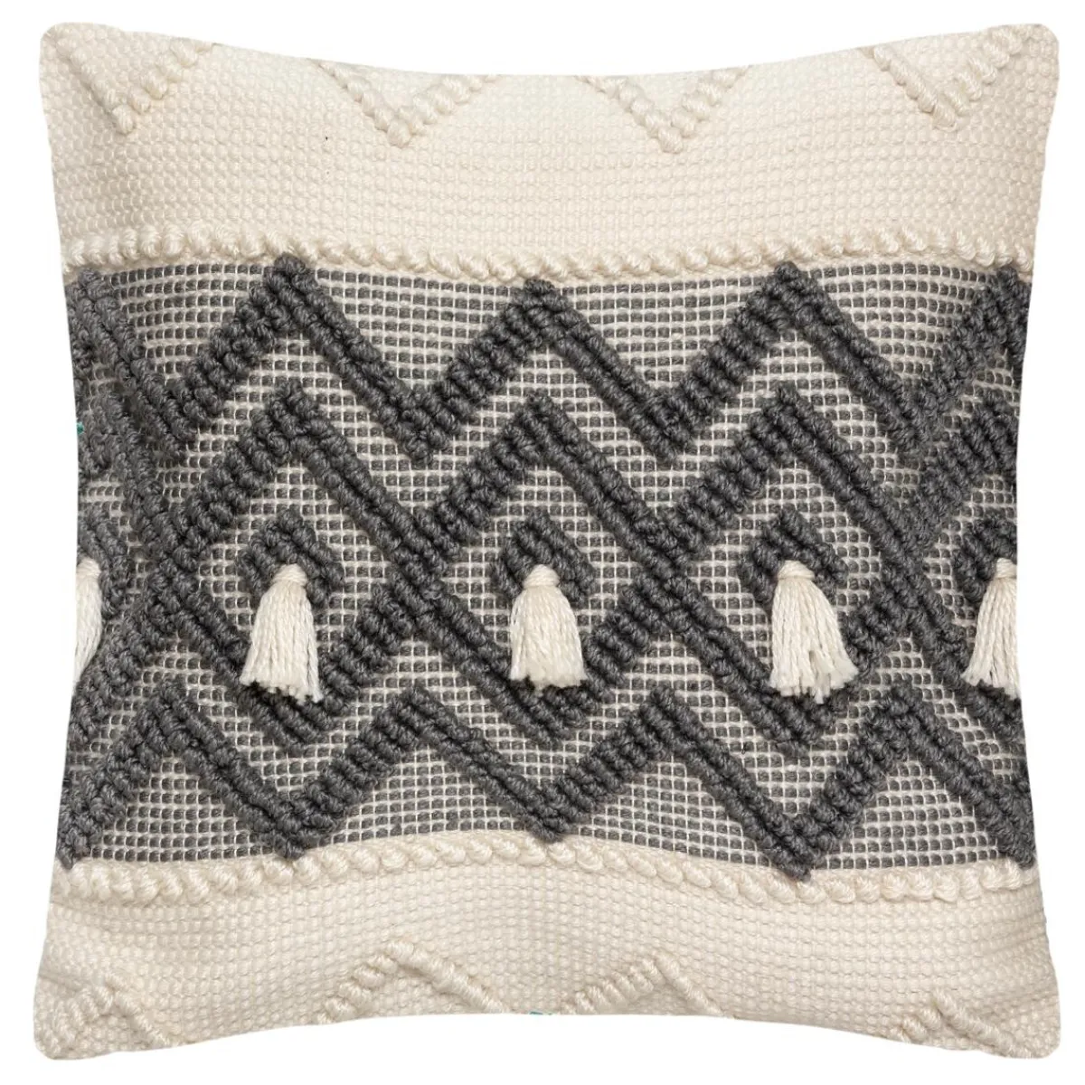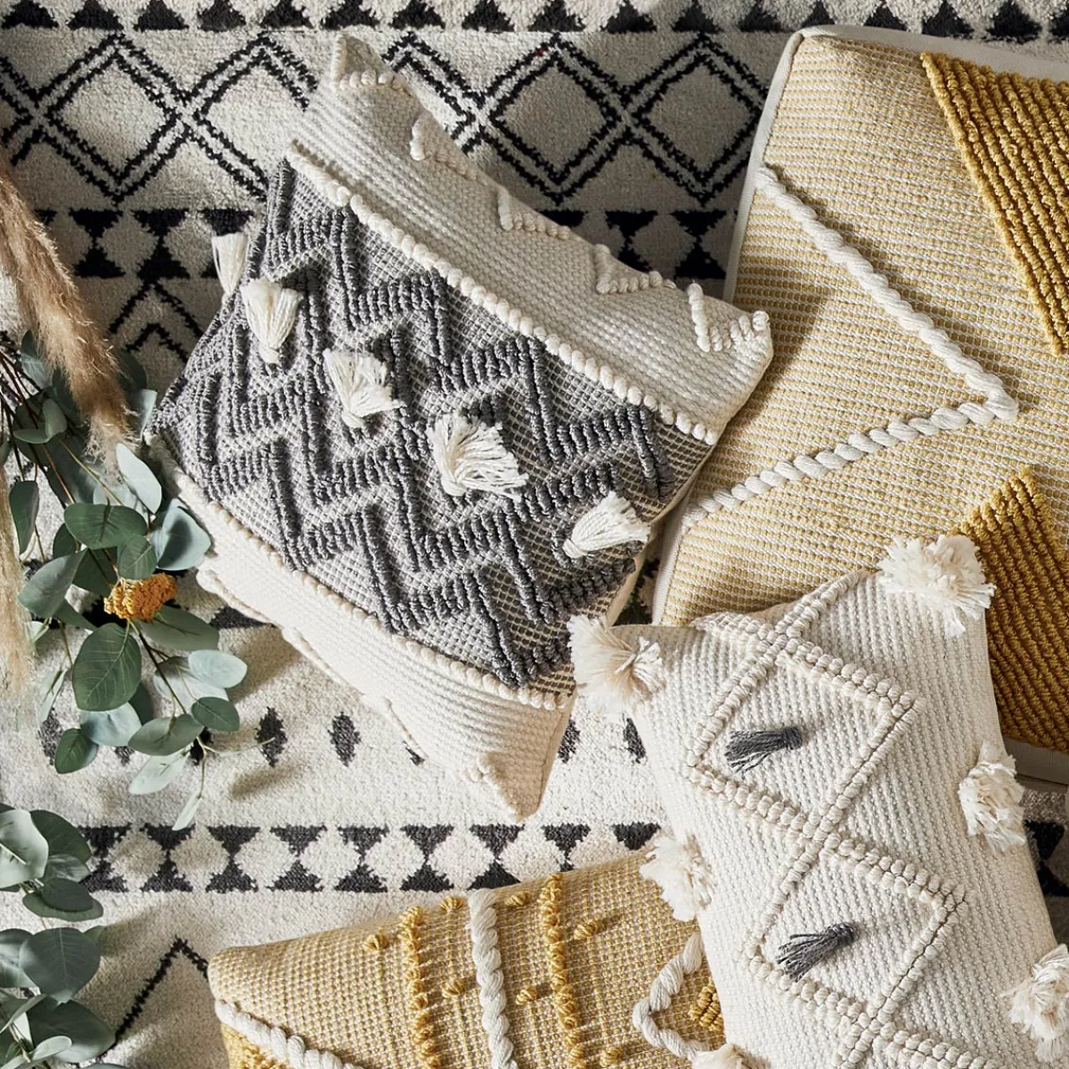 De forme carrée, ce coussin attire les regards avec sa confection rappelant l’art du macramé et ses motifs créés à la main. Incroyablement doux au toucher, il a été entièrement réalisé à partir de bouteilles recyclées. Un matériau transformé, revalorisé et sublimé pour créer une décoration durable !