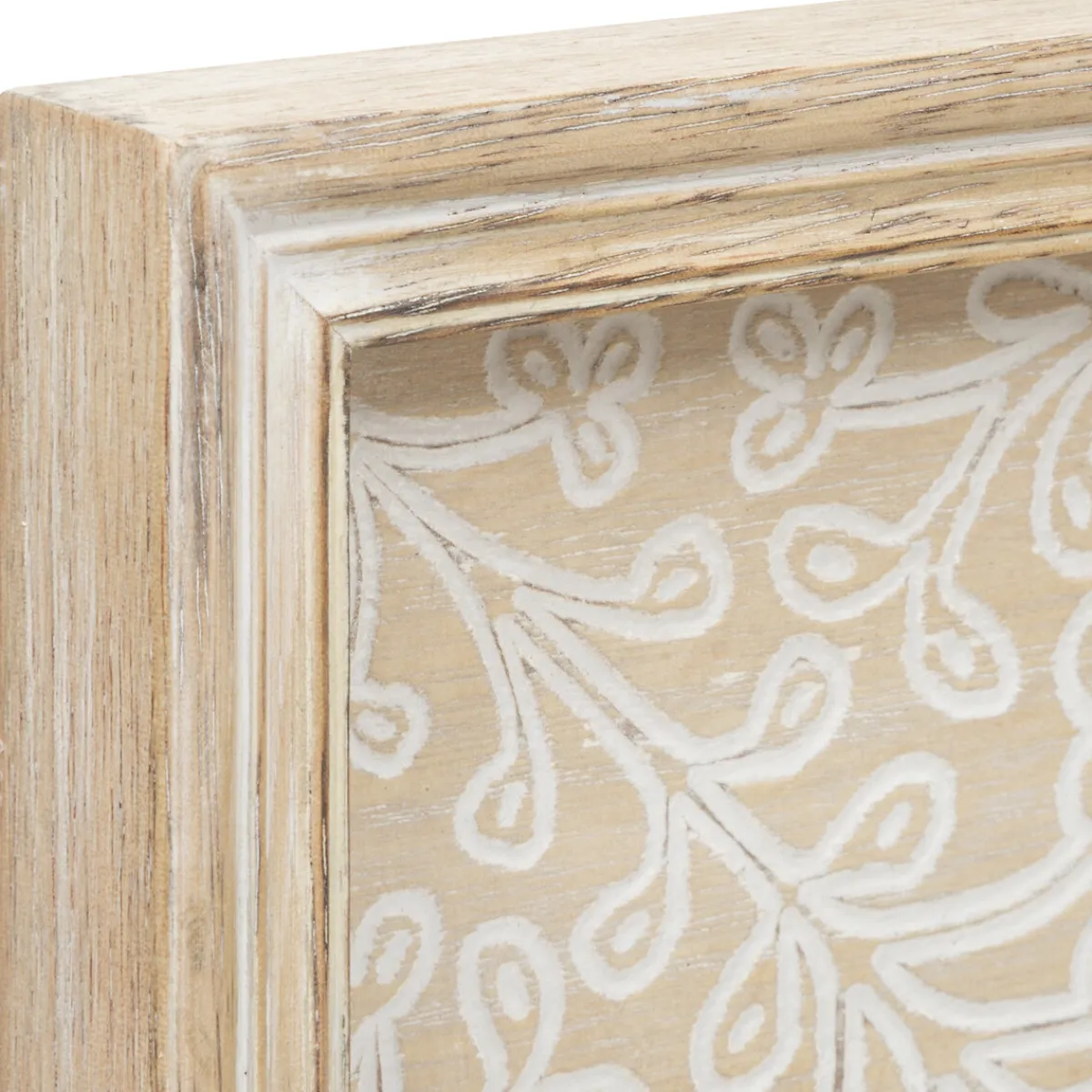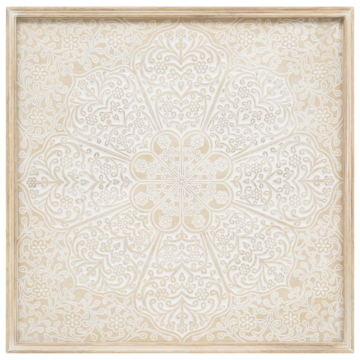 Réalisée à partir d’un cadre en bois d’hévéa, la déco murale « Timea » obéit à des dimensions carrées et trouvera sa place sur un mur, même dans un petit espace, pour créer une ambiance exotique.
