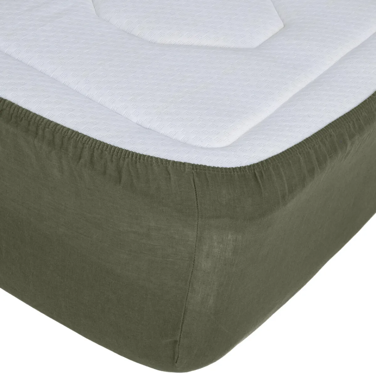 Ce drap-housse deux personnes Atmosphera est conçu pour s’adapter à tous les matelas grâce à son bonnet de 30 cm de hauteur. Facile d’entretien, le lin passe en machine à 40 degrés.