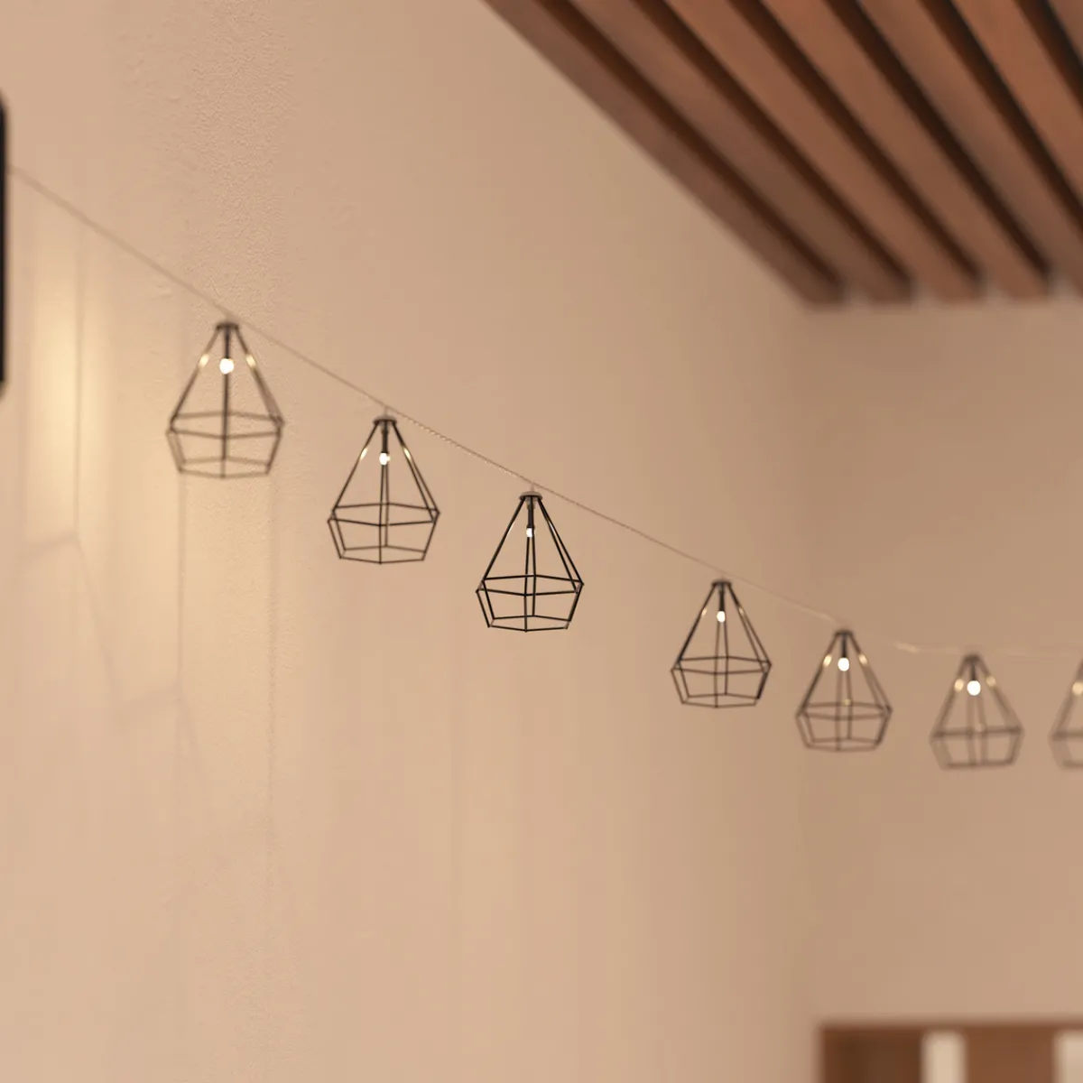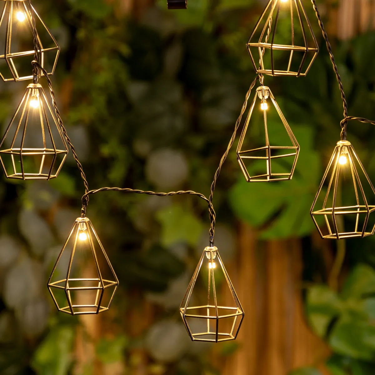 Conçue pour l’extérieur, cette guirlande se caractérise par des petites cages métalliques qui accueillent les ampoules LED. Le panneau solaire permettra de recharger la batterie pendant la journée. Après une charge complète, ce luminaire vous offrira jusqu’à huit heures d’éclairage.
