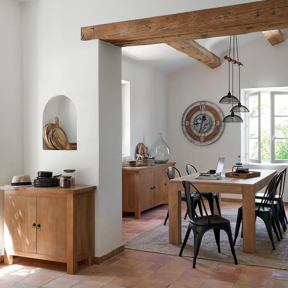 L’horloge « Lana » reprend les codes de la décoration de style industriel avec son mélange de métal et bois, entourant un engrenage apparent. Vous apprécierez la qualité des matériaux utilisés qui font de l’horloge « Lana » un objet durable au design actuel.