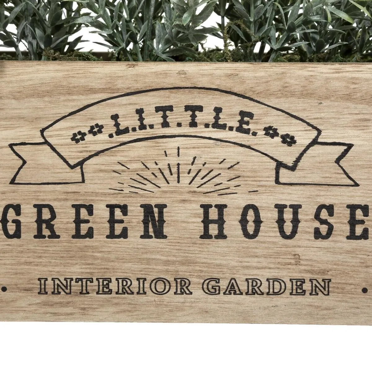 Réalisée en bois, la jardinière artificielle est agrémentée de plantes artificielles très réalistes et couvertes de mousse végétale au niveau de leurs pieds. Les extrémités du contenant rectangulaire sont munies de poignées en bois et métal afin de le transporter facilement. Gravé d’inscriptions qui lui confèrent son air vintage, le bac en bois offre un aspect très authentique.