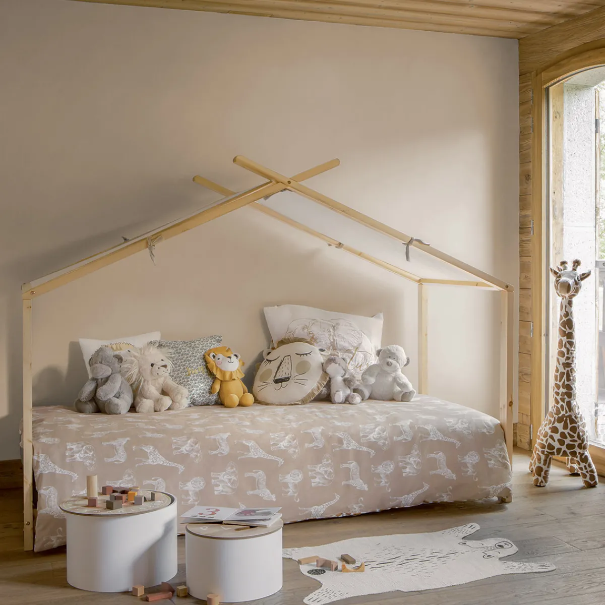Constitué d’une structure épurée en pin naturel, d’un sommier à 16 lattes et d’une toile, ce lit tente 1 place offrira à votre bout de chou un refuge rien qu’à lui : rien de mieux pour nourrir son imaginaire d’histoires de cow-boys et d’indiens, entre autres chevauchées fantastiques.