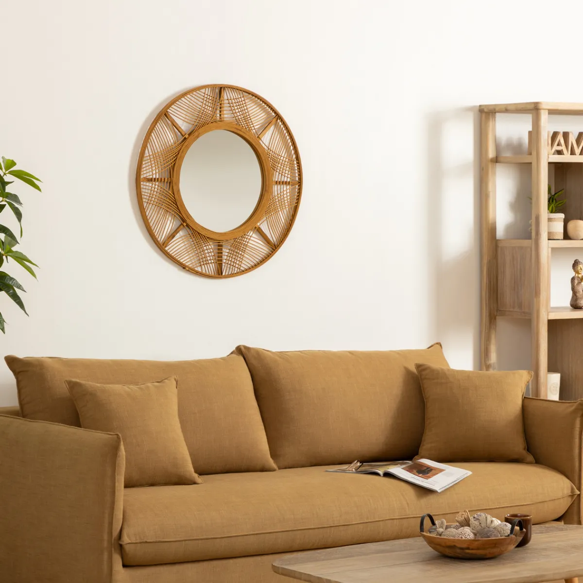 L’esthétique raffinée et naturelle de ce miroir aux dimensions généreuses en feront un accessoire parfait pour une pièce au mobilier en bois. Réalisé en bambou tressé aérien, le cadre du miroir » Ina » lui donne un style tout en légèreté.