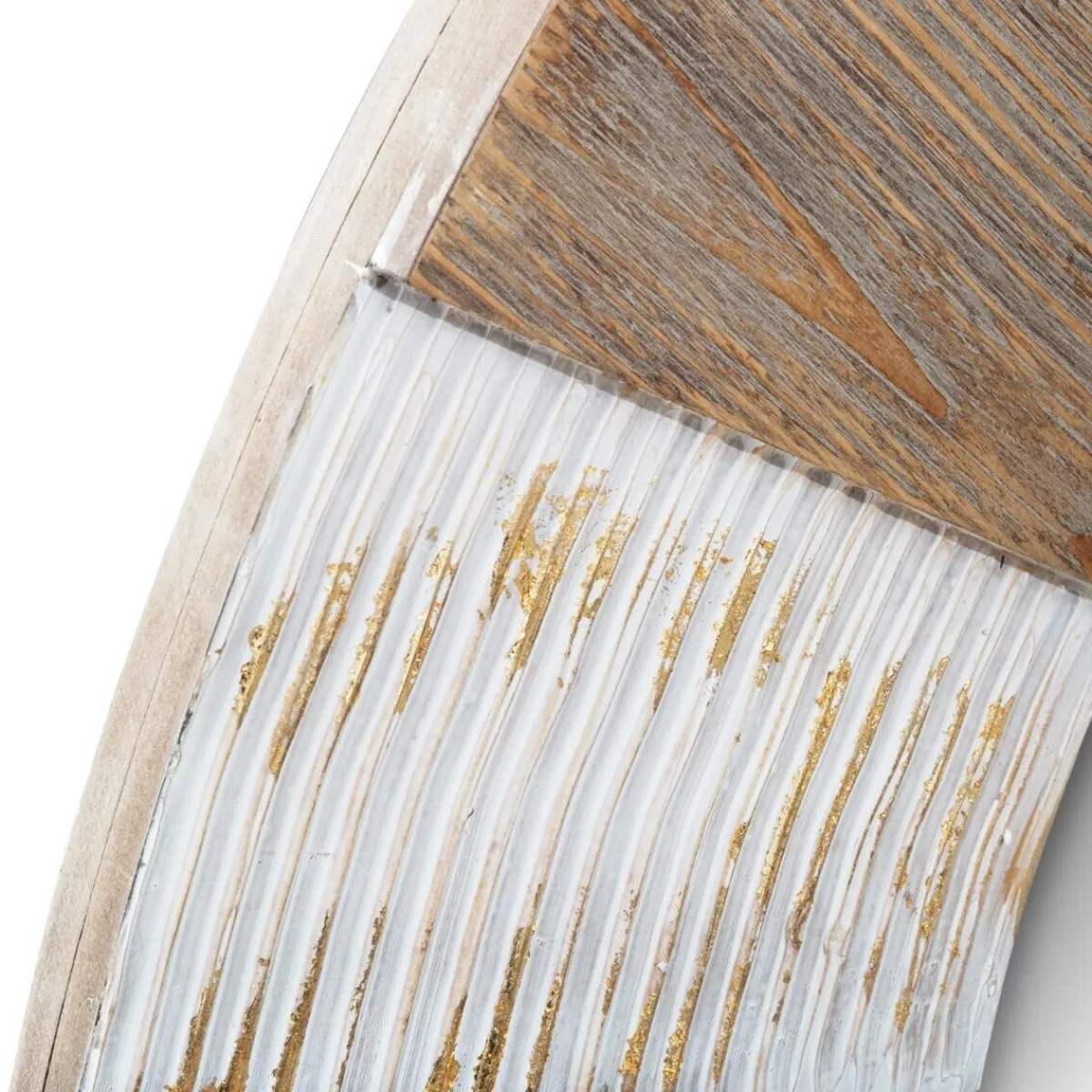 Inspiré des superbes colliers plastrons massaï, ce miroir fait alterner bois naturel veiné et stries peintes et patinées. Grand format, il décore le mur du salon ou de la chambre de sa singularité.